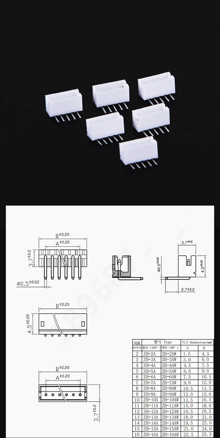 1,5mmZH2/3/4/5/6/7/8/9/10 pines Conector macho x 20 piezas