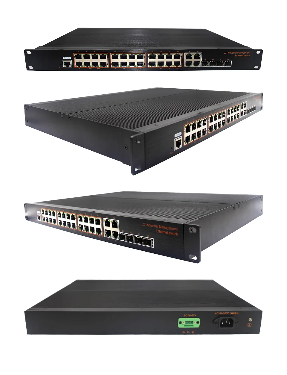 JT-COM-POE de grado industrial gestionado L2, con puertos de ranura RJ45 de 24x1000M y puertos combinados TP/SFP de 4x1000M