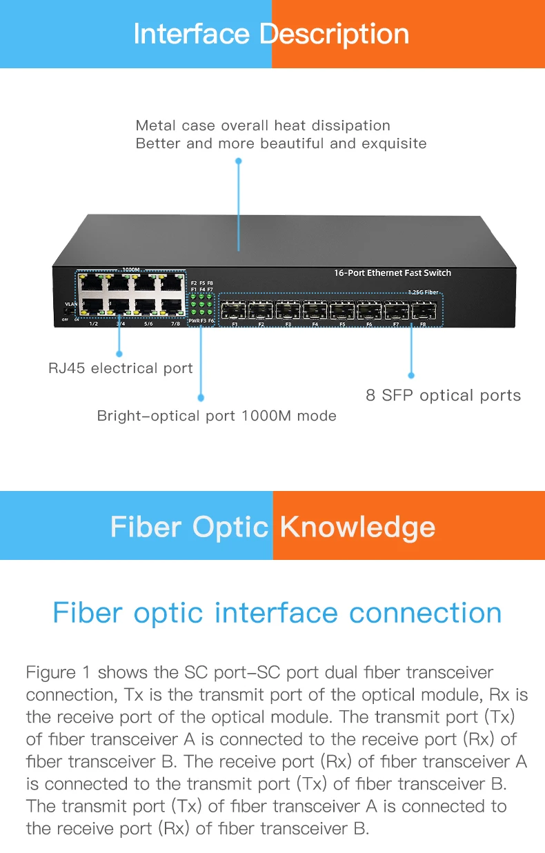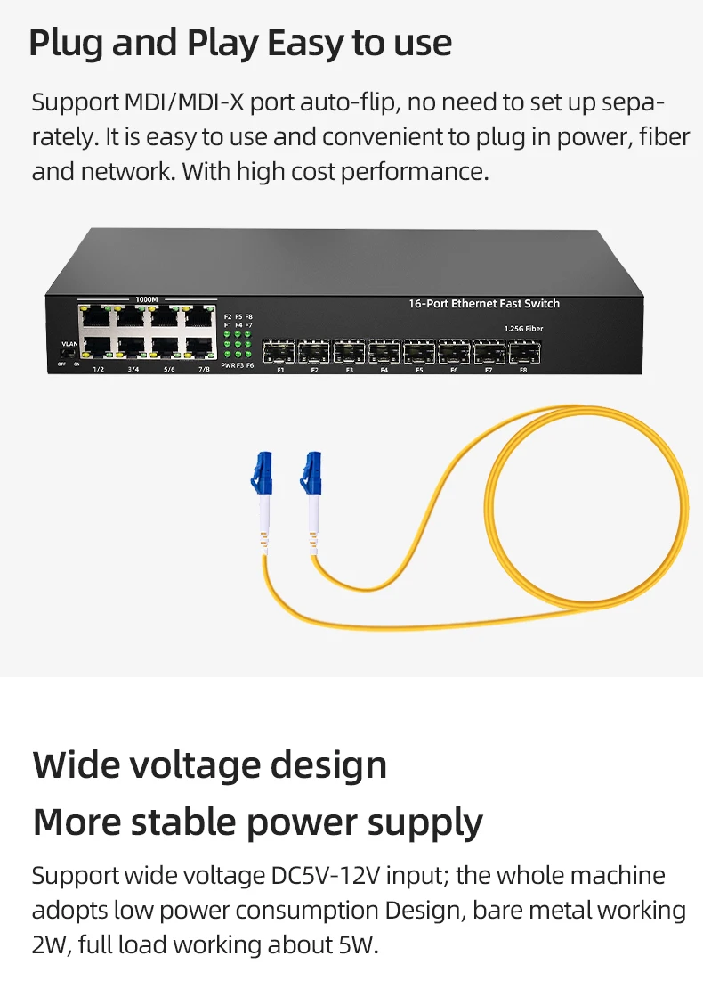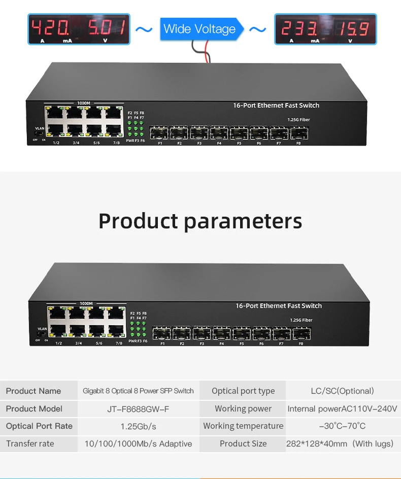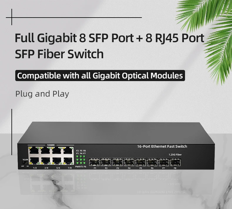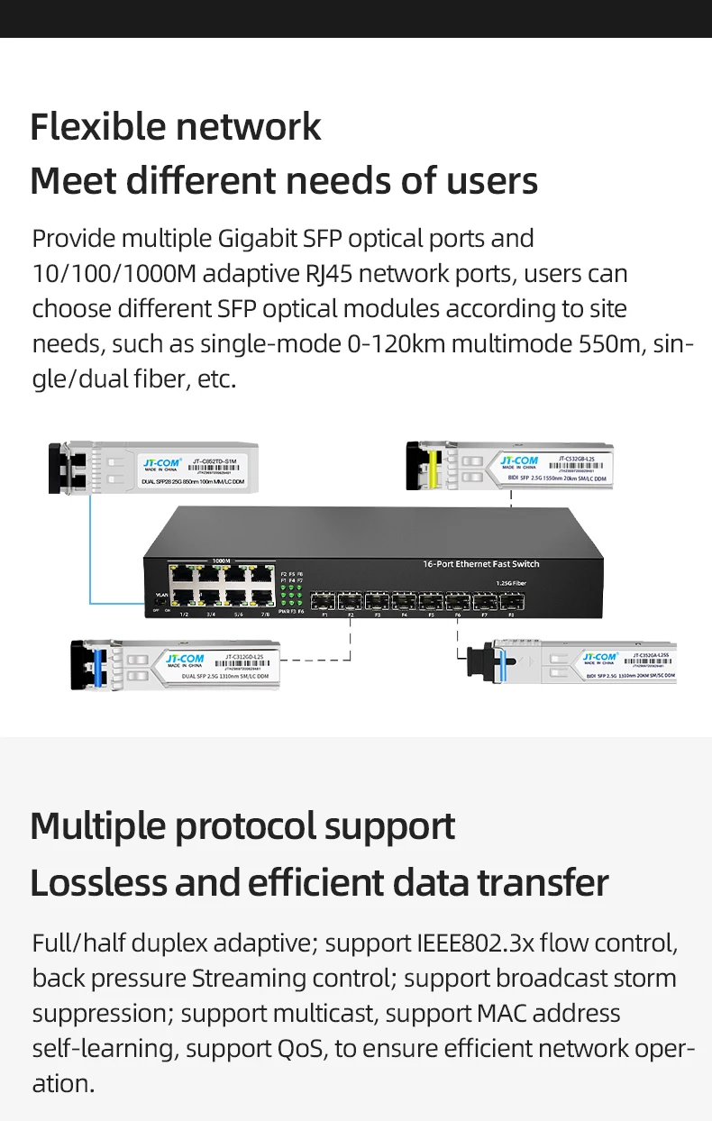 Comprar JT-COM puerto Gigabit 8 SFP completo + 8 puertos RJ45 interruptor de fibra SFP Compatible con todos los módulos ópticos Gigabit Plug and Play