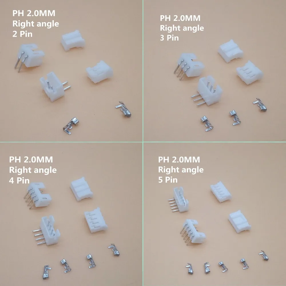 Comprar Juego de 100 conectores PH2.0 de 2,0mm de ángulo recto, 2/3/4/5/6/7/8/9/10P (cabezal de Pin + carcasa + Terminal)