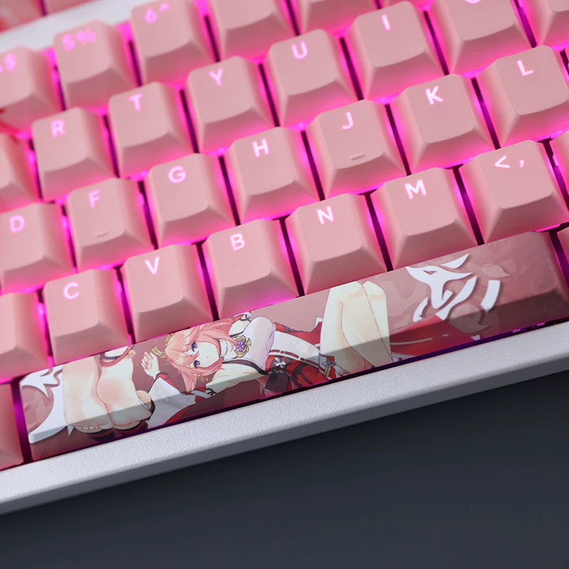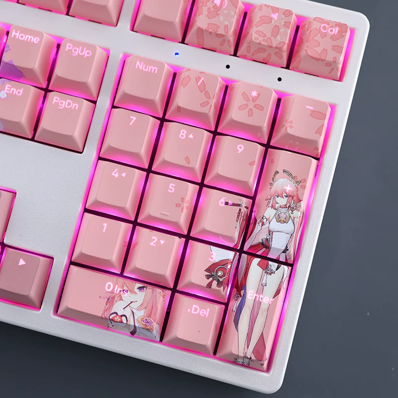 Juego de 108 teclas Genshin Impact Yae Miko, teclas PBT Dye Sub retroiluminadas, teclas de juego de Anime para teclados ANSI 61 87 104 108