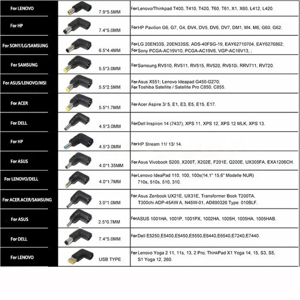 Adaptador de corriente multiusos para computadora portátil para reparar el adaptador y el enchufe de la computadora