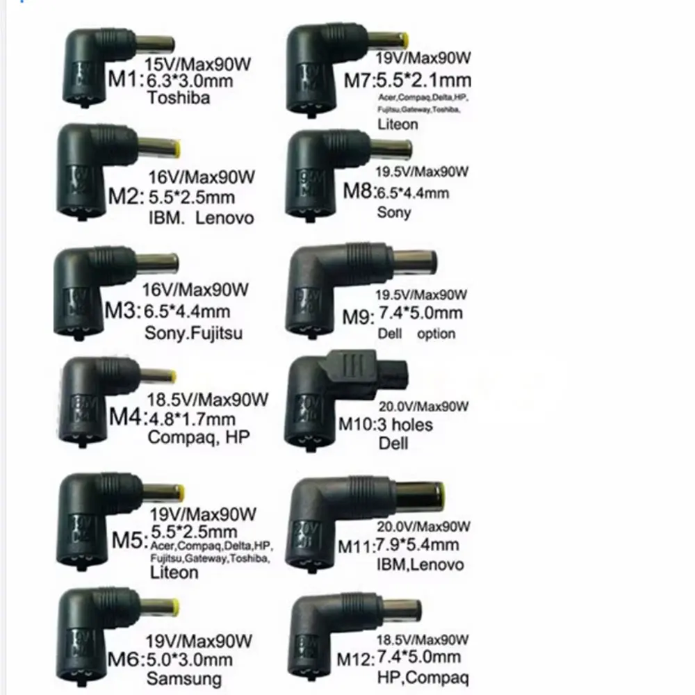 M20: 19 V 4,0 * 1,7 * 10,7 mm, adecuado para HP 19 V/1,5 A, etc. FUJITSU 16 V/2,5 A, 16 V/2,1 A, 16 V/3,75 A, 16 V/4 A, etc., adecuado para SONY 16 V/2,5 A, 16 V/2.1 A, 16 V/3.75 A, 16 V/4 A, etc.