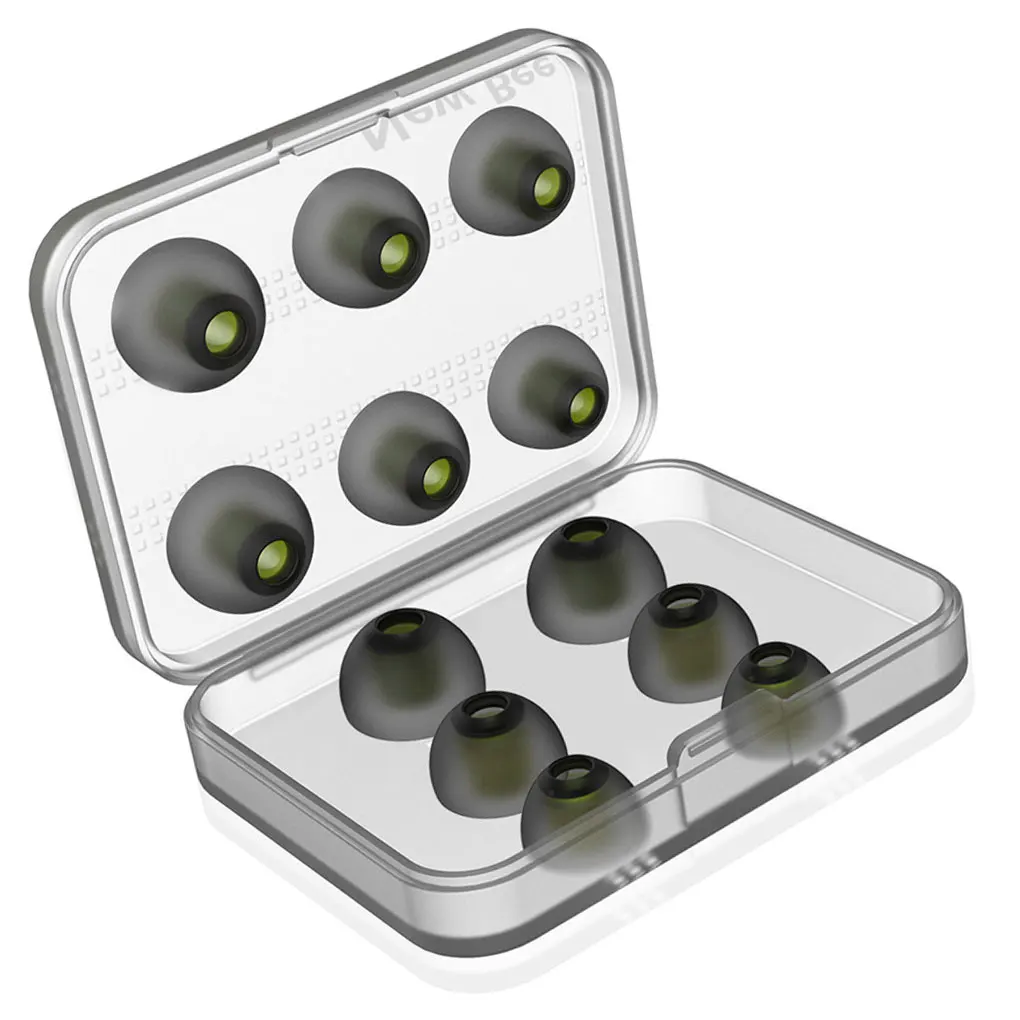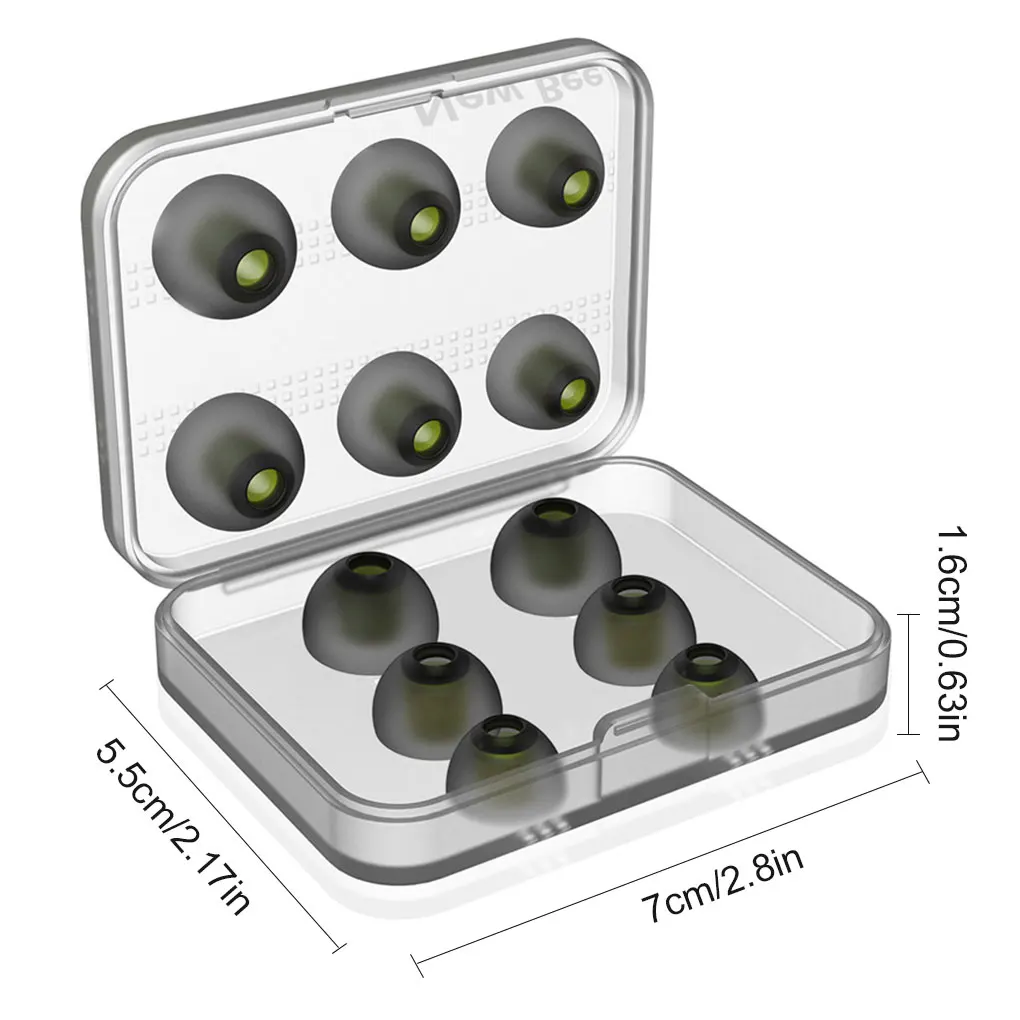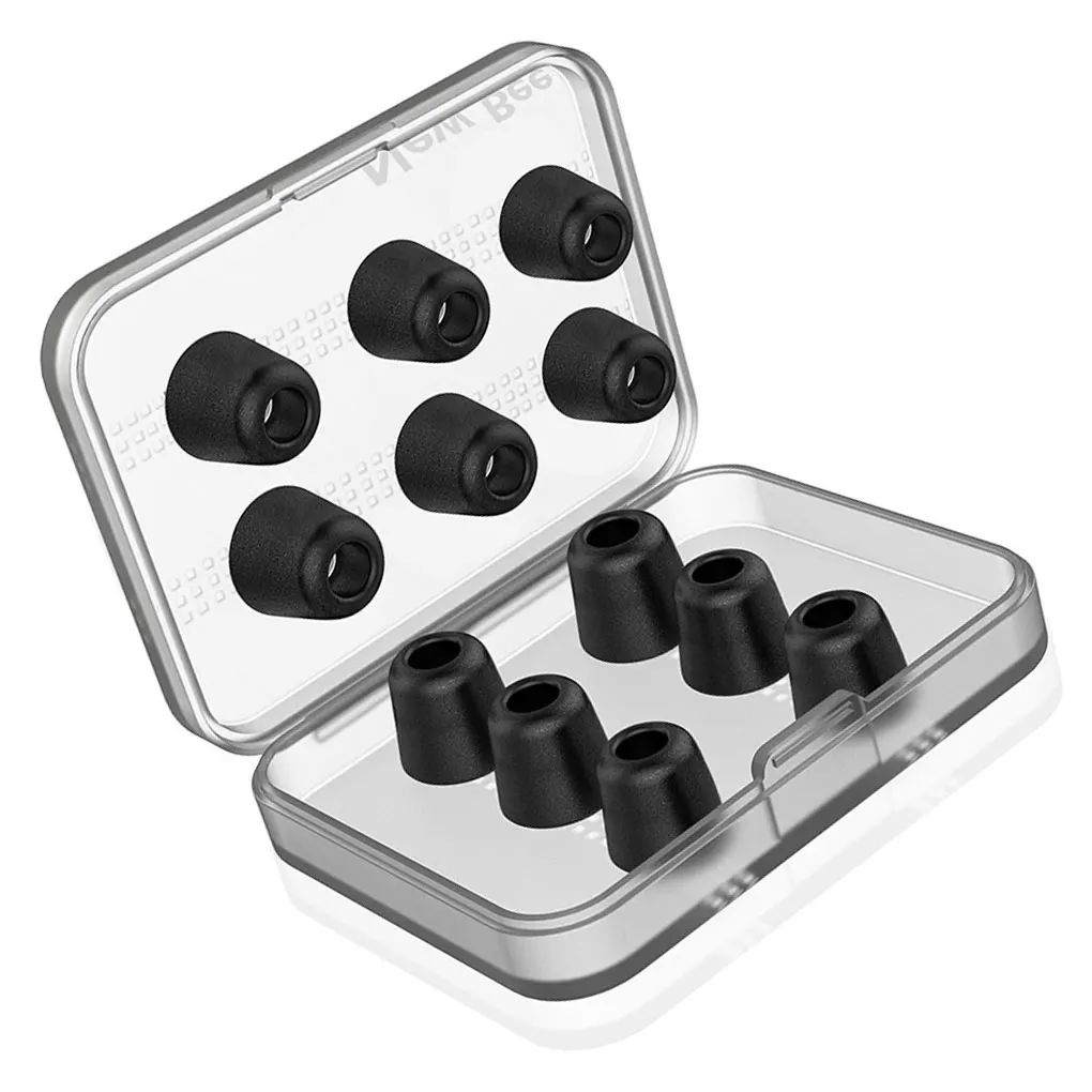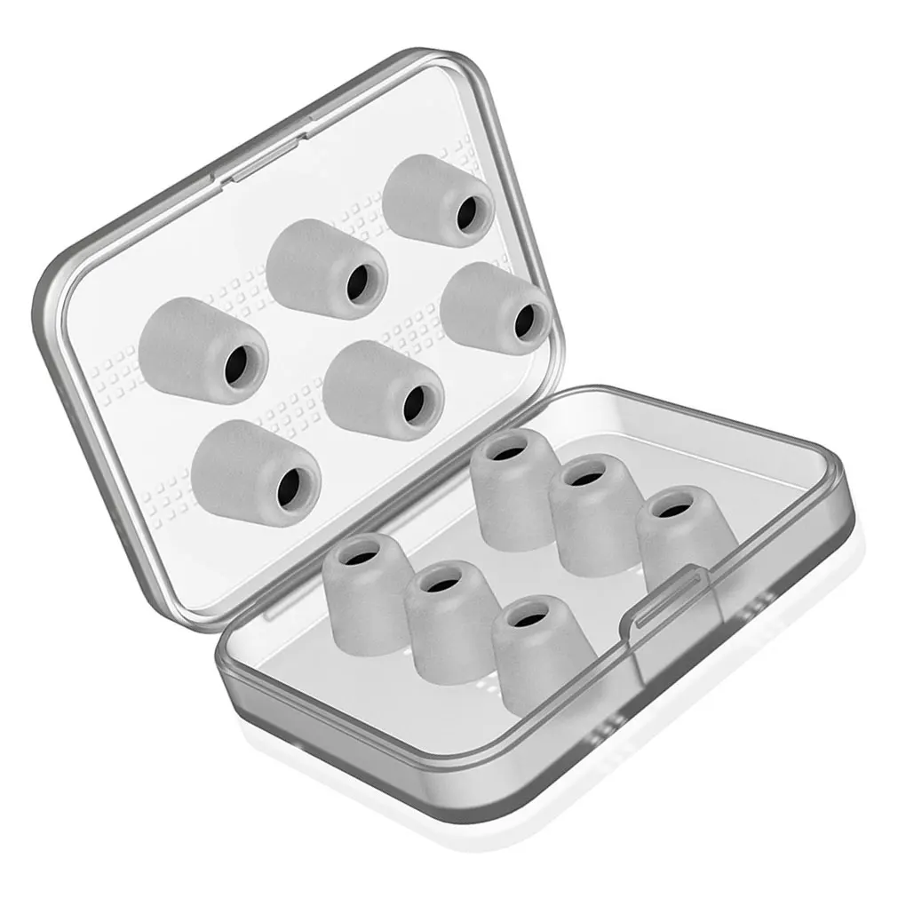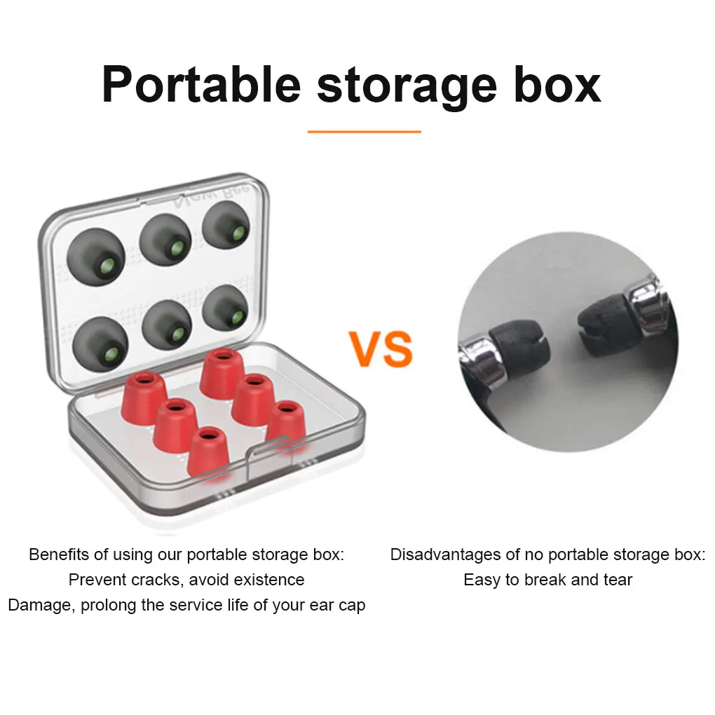 Adecuado para canales auditivos de varios tamaños, transpirable, suave y cómodo.Frote la esponja de memoria al mínimo antes de entrar en el oído (alrededor de 5 segundos de tiempo de rebote, cuanto más tiempo de rebote, mejor será la calidad de la esponja de memoria) la esponja se expandirá y llenará lentamente según los diferentes canales auditivos.Las orejeras de material de espuma viscoelástica, que tienen un cierto efecto de aislamiento acústico que las orejeras de silicona normales, están cerca de las orejas, de modo que la música rebota completamente en tus oídos, mejorando el efecto de graves.Caja de almacenamiento de diseño exclusivo, que se puede almacenar en la caja después de su uso, lo que puede extender la vida útil de la tapa del oído.Adecuado para la mayoría de los enchufes de auriculares de 5mm-6mm.Especificación:Nombre: tapones de memoria.Material: espuma viscoelástica.Espuma viscoelásticaGrande: 12,95mm de diámetro exterior y 5mm de diámetro interiorMedio: 12,6mm de diámetro exterior y 5mm de diámetro interiorPequeño: 10,8mm de diámetro exterior y 5mm de diámetro interiorTapas de siliconaGrande: 12,95mm de diámetro exterior y 4,56mm de diámetro interiorMedio: diámetro exterior 12,6mm diámetro interior 4,56mmPequeño: 10,8mm de diámetro exterior, 4,56mm de diámetro interiorCompatible: auriculares de 5mm-6mm.Color: (esponja de memoria) negro, rojo, gris.Nota:Puede haber un poco de distorsión de color debido a las diferentes resoluciones del ordenador.Puede haber errores de tamaño debido a las diferentes resoluciones del ordenador.El paquete incluye:1 * Juego de puntas de esponja para los oídos (incluye 12 piezas).