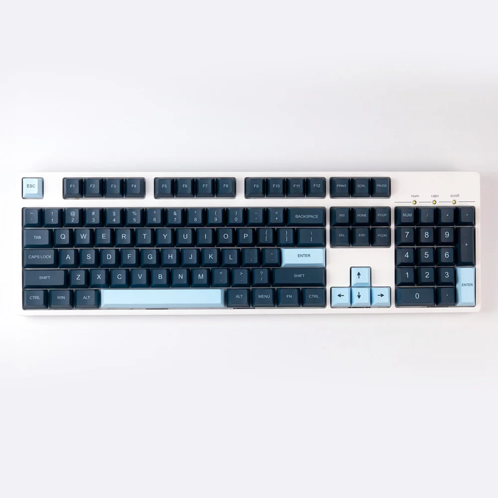 Total de 128 teclas, incluye novedades de 1,75U, 2U, 1,5U, es compatible con 61, 64, 84, 87, 96, 980, 104, 108, etc.teclado mecánico de diseño con interruptores MX