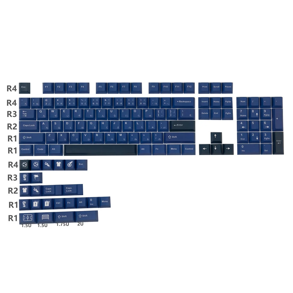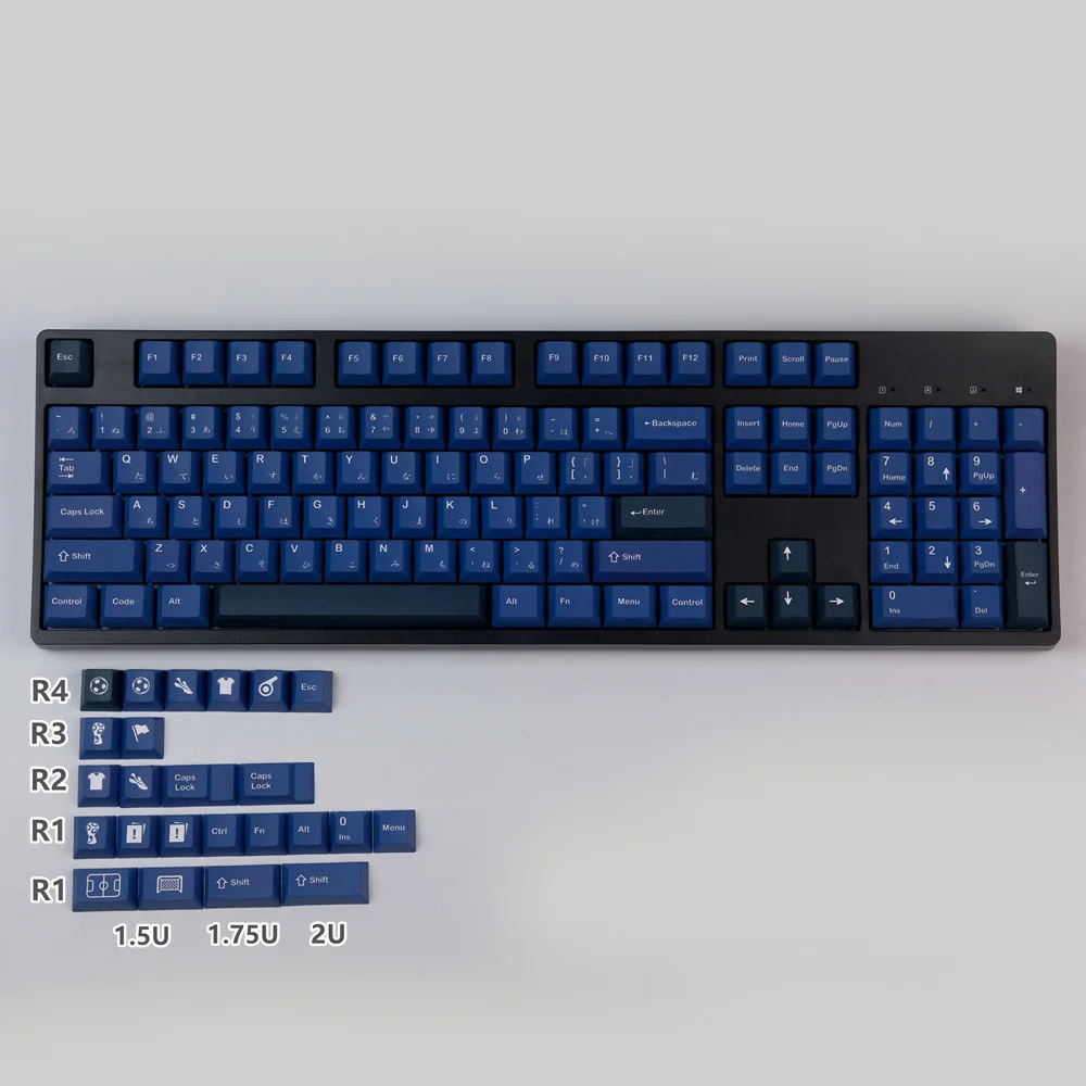 Total de 128 teclas, incluye 1,75U, cambio 2U y suplemento de 1,5u, es compatible con 61, 64, 84, 87, 980, 104, 108, etc.teclado mecánico de diseño con interruptores MX
