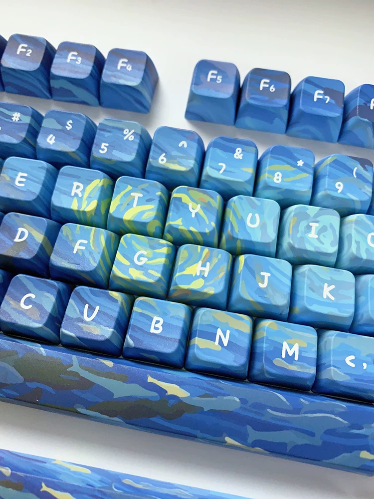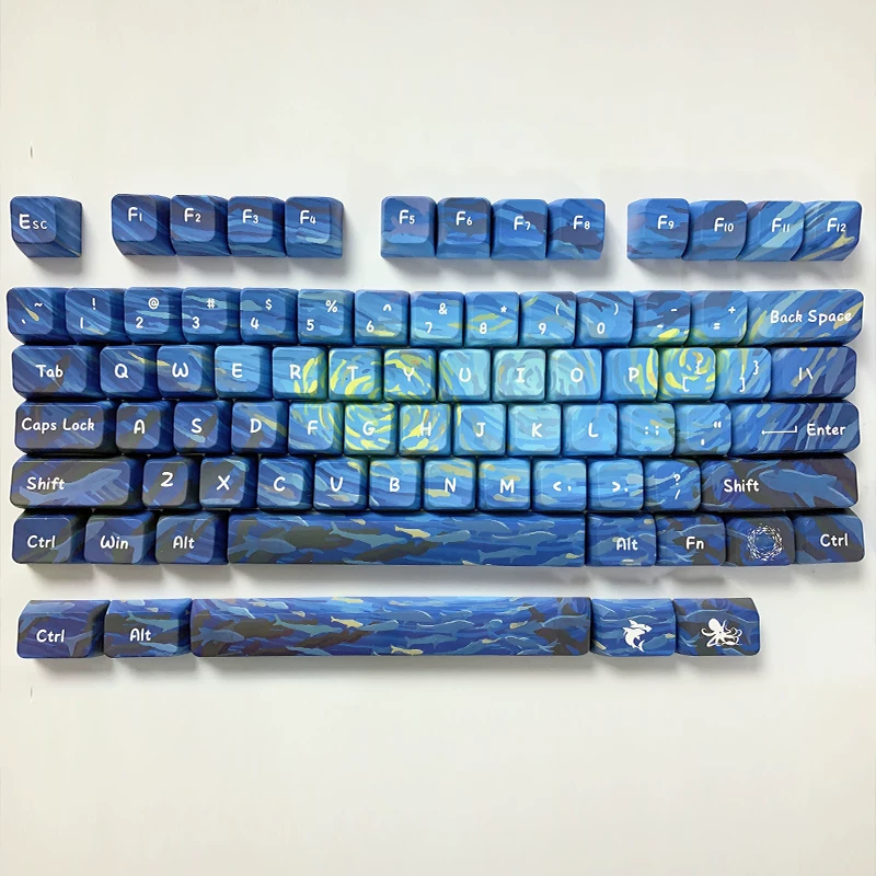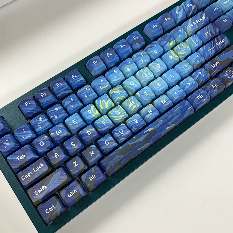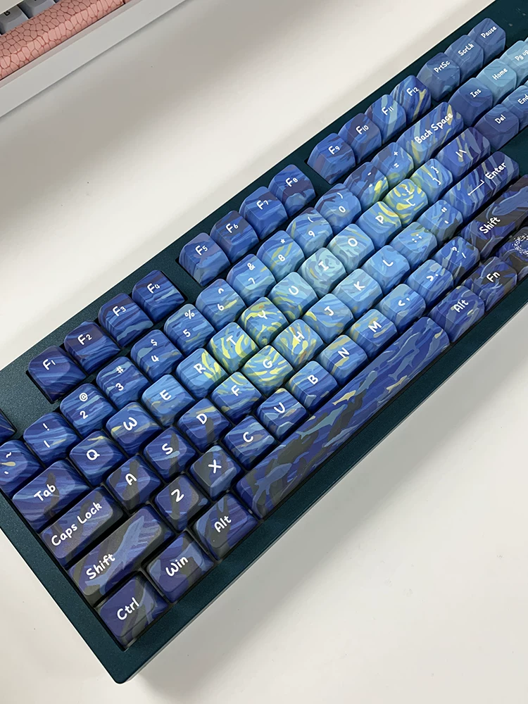 Total de 134 teclas, incluye 1.75U, 2U Shift, 1.5U ctrl alt, 6.25U, 7U Barra espaciadora, es compatible con 61 、 63 64 、 65 67 68 、 80 84 、 87 、 96 、 980 、 104 、 108, etc. Diseño de teclado mecánico con interruptores MX