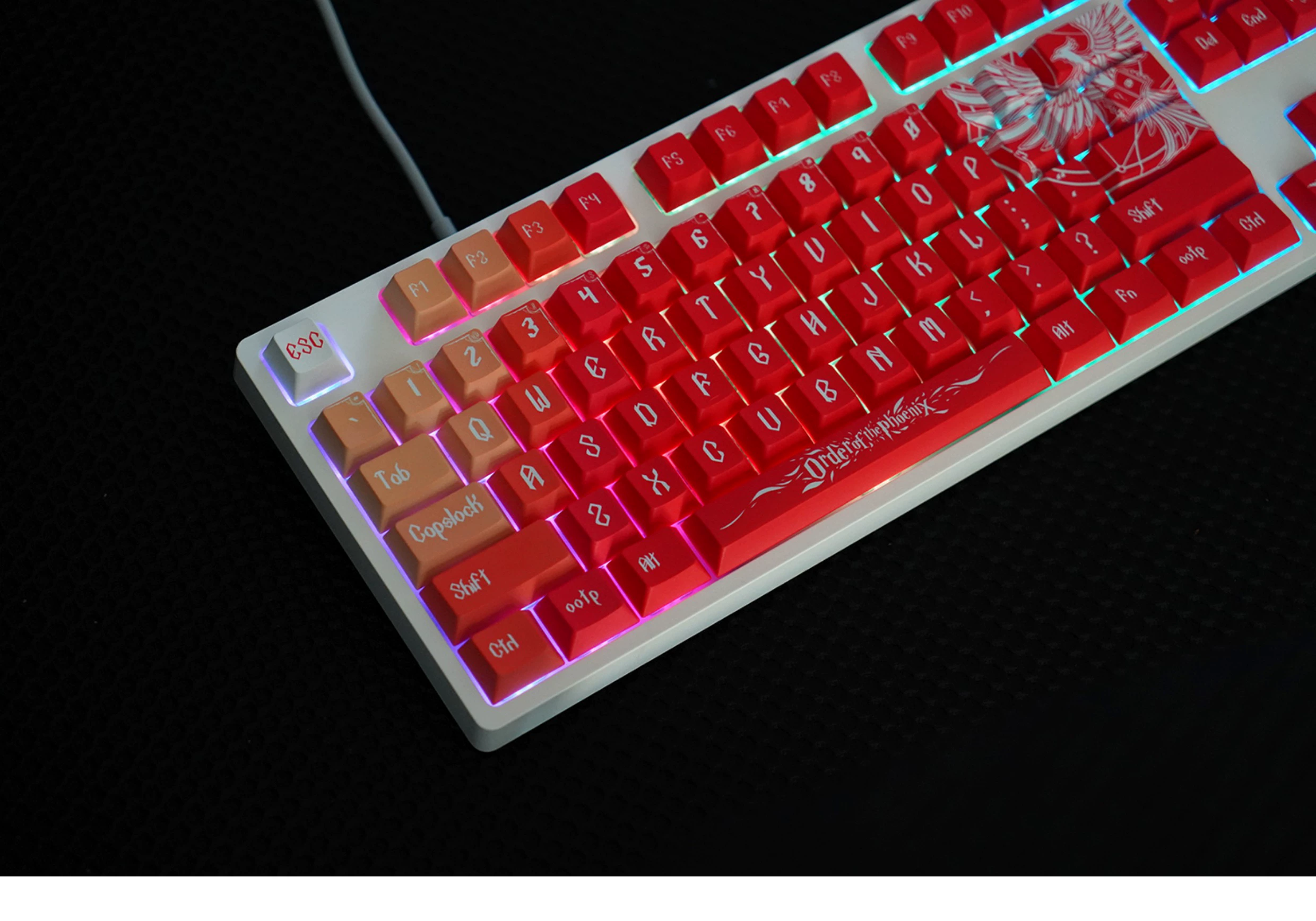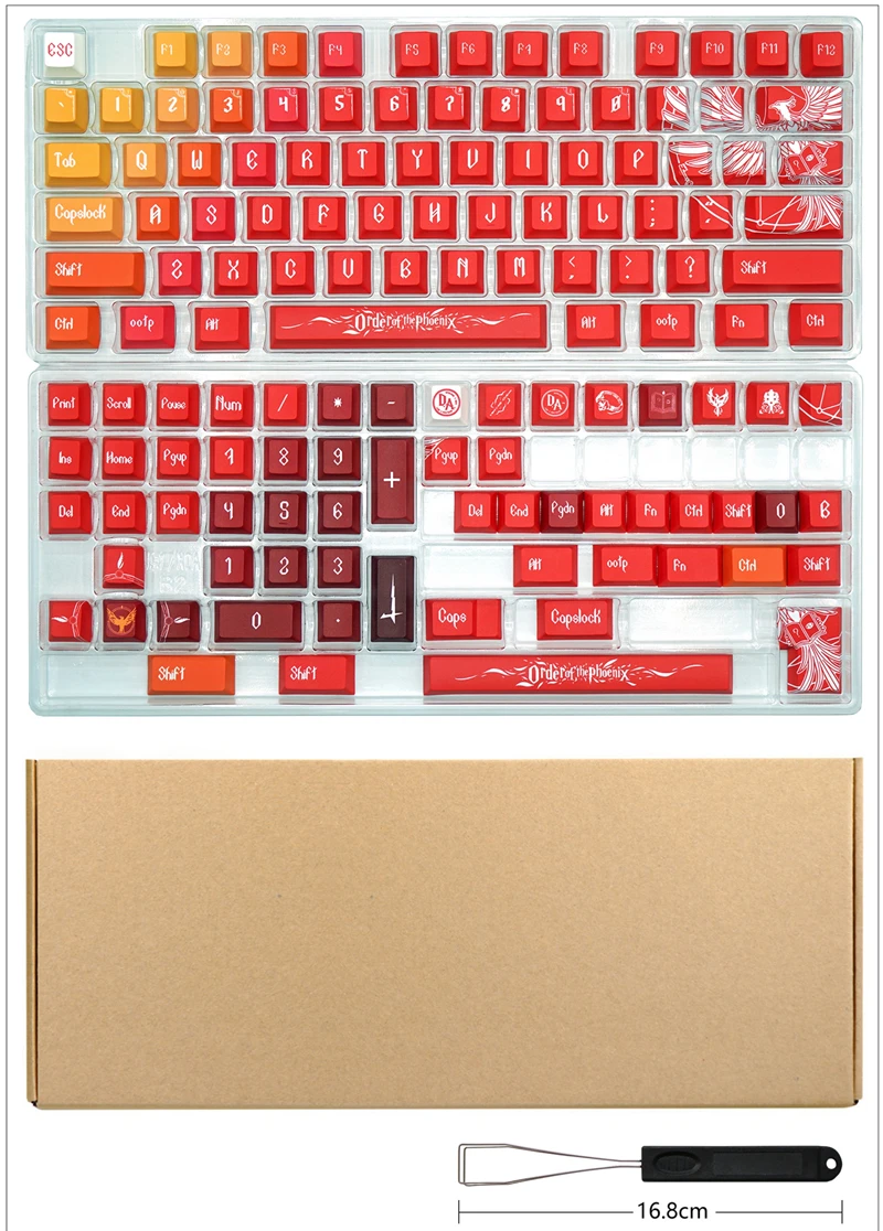 Comprar Juego de 134 teclas Phoenix, tapas de tecla de sublimación de tinte PBT, perfil de cereza, a prueba de luz, para 61, 64, 68, 75, 84, 87, 96, 980, 104, 108
