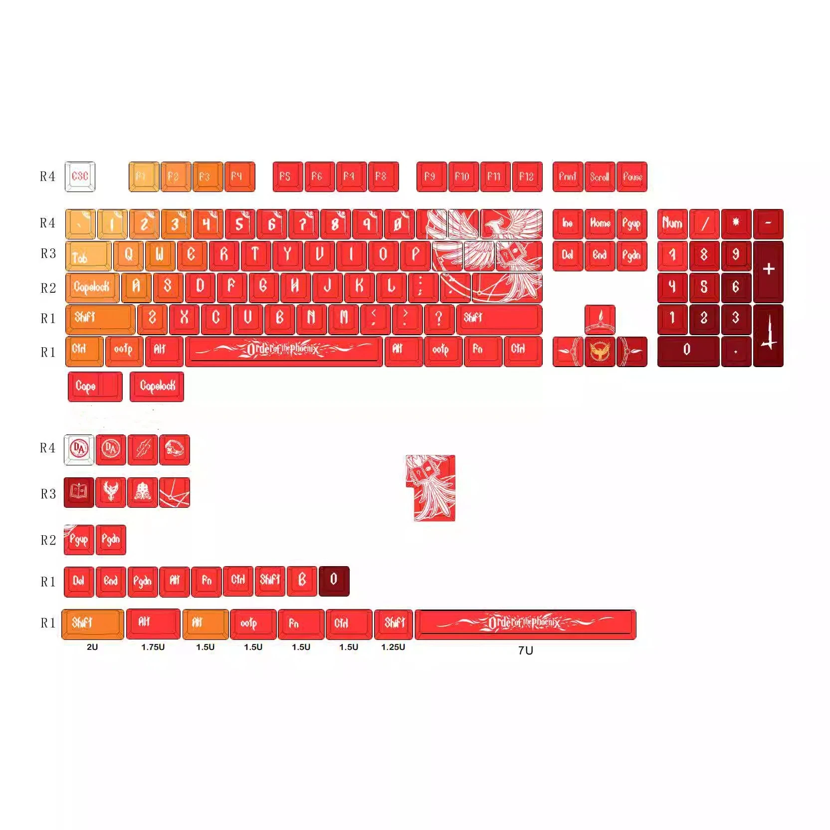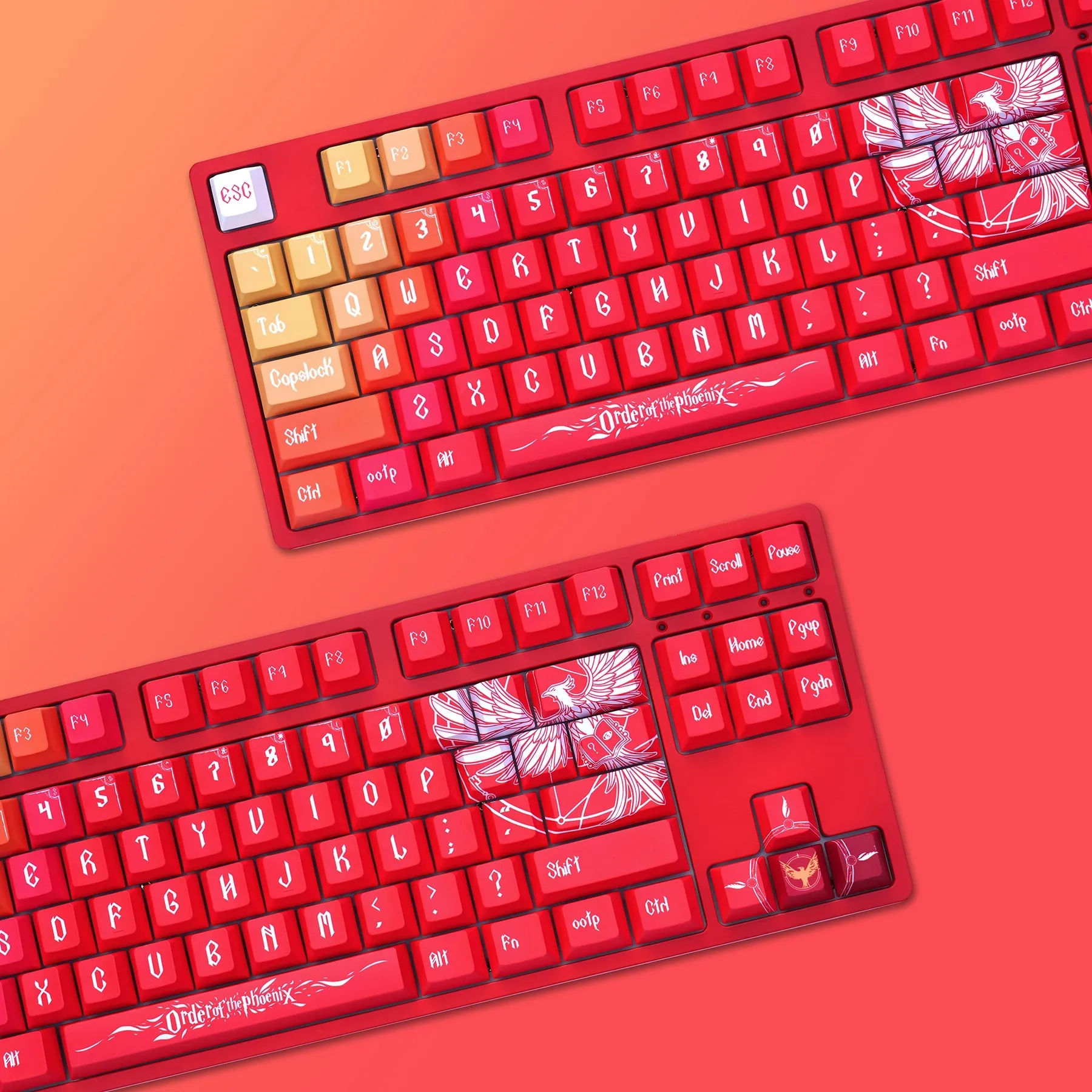 Comprar Juego de 134 teclas Phoenix, tapas de tecla de sublimación de tinte PBT, perfil de cereza, a prueba de luz, para 61, 64, 68, 75, 84, 87, 96, 980, 104, 108