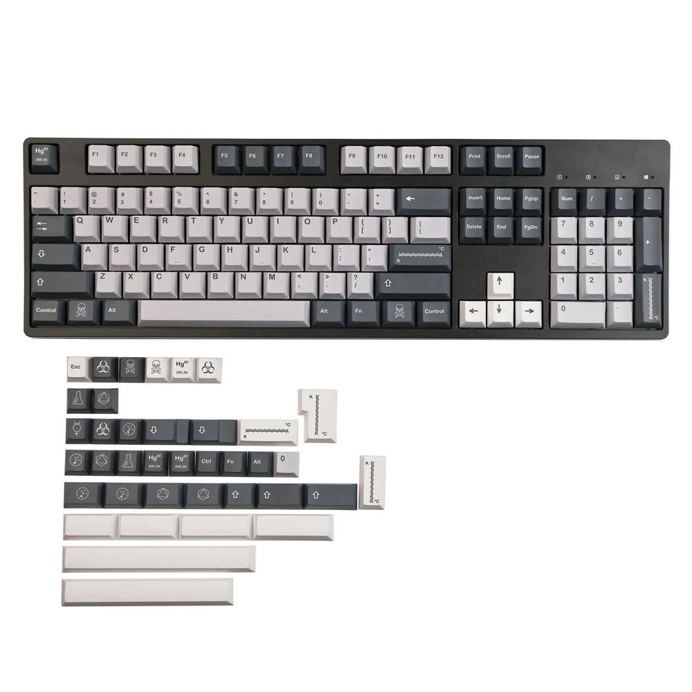 Total de 140 teclas, incluye 1,75U, cambio 2U, ctrl alt de 1,5U, entrada ISO y 3U, 6,25U, barra espaciadora 7U, es compatible con61、63 64、65 67 68、80 84、87、96、980、104、108, etc.teclado mecánico de diseño con interruptores MX