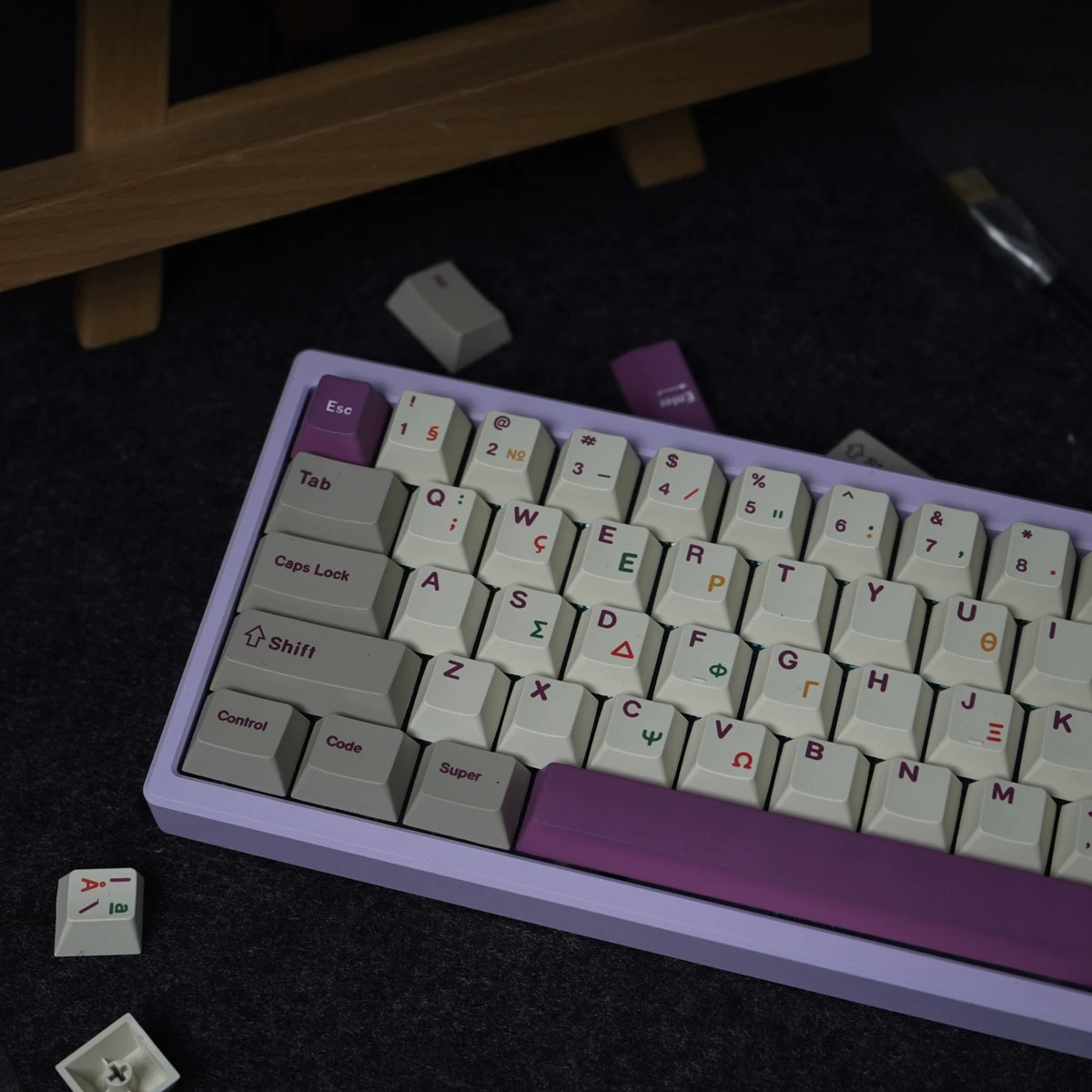 Comprar Juego de 143 teclas griegas púrpuras, sublimación de tinte PBT, tapas de llave a prueba de luz, perfil de cereza, teclas grises Retro Para 61, 68, 75, 84, 98