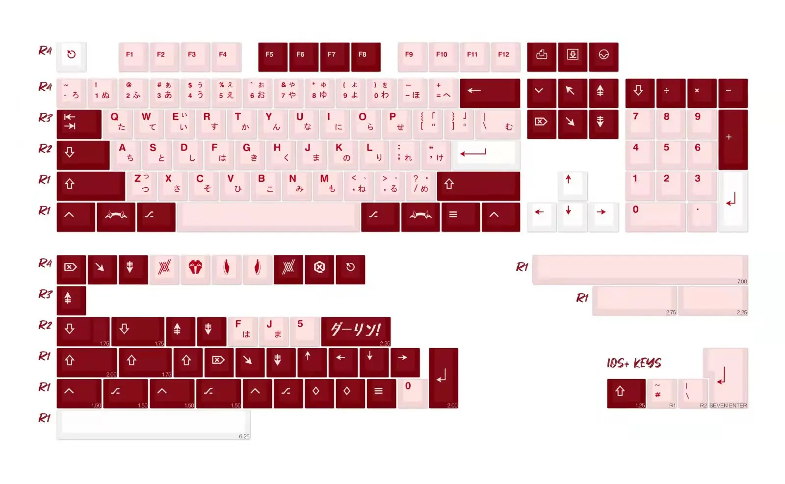 Total 152 teclas, incluye 1.75U, 2U Shift, 1.5U ctrl alt, ISO Enter y 2.25U, 2.75U, 7U Barra espaciadora, es compatible con61、63 64、65 67 68、80 84、87、96、980、104、108, Etc. Diseño de teclado mecánico con interruptores MX