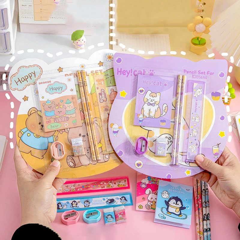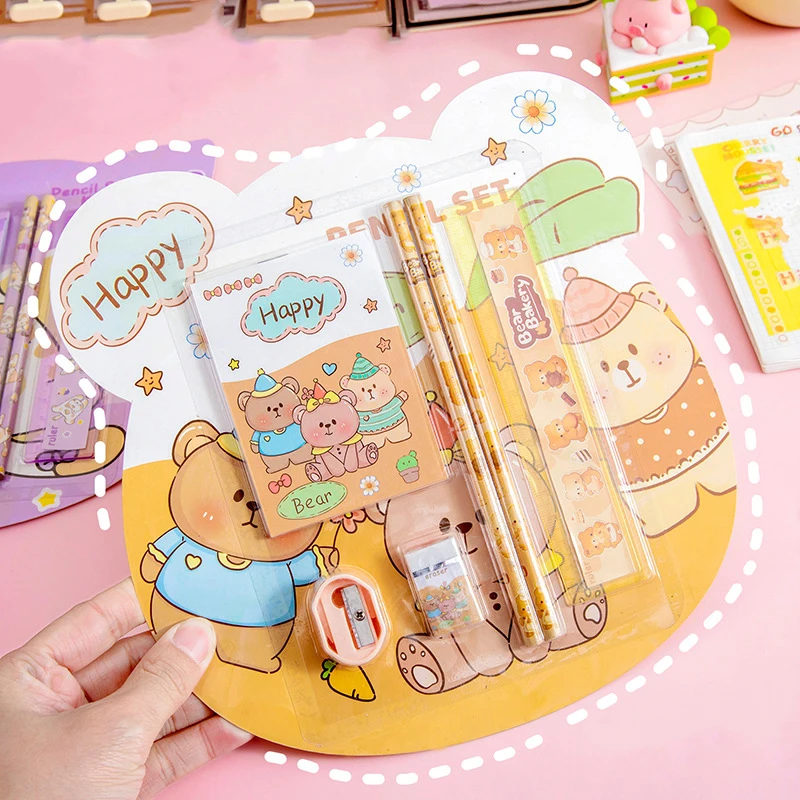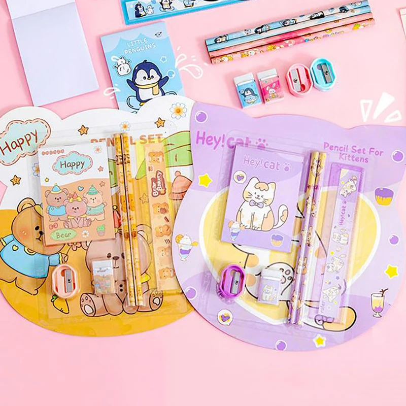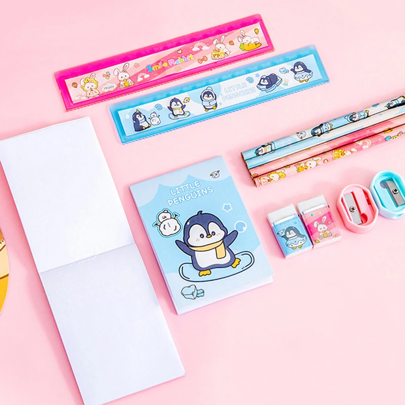 5.Adecuado como regalo: este traje de papelería de dibujos animados es una opción de regalo perfecta, ya sea cumpleaños o temporada escolar, a los niños les gustará este regalo práctico y divertido.