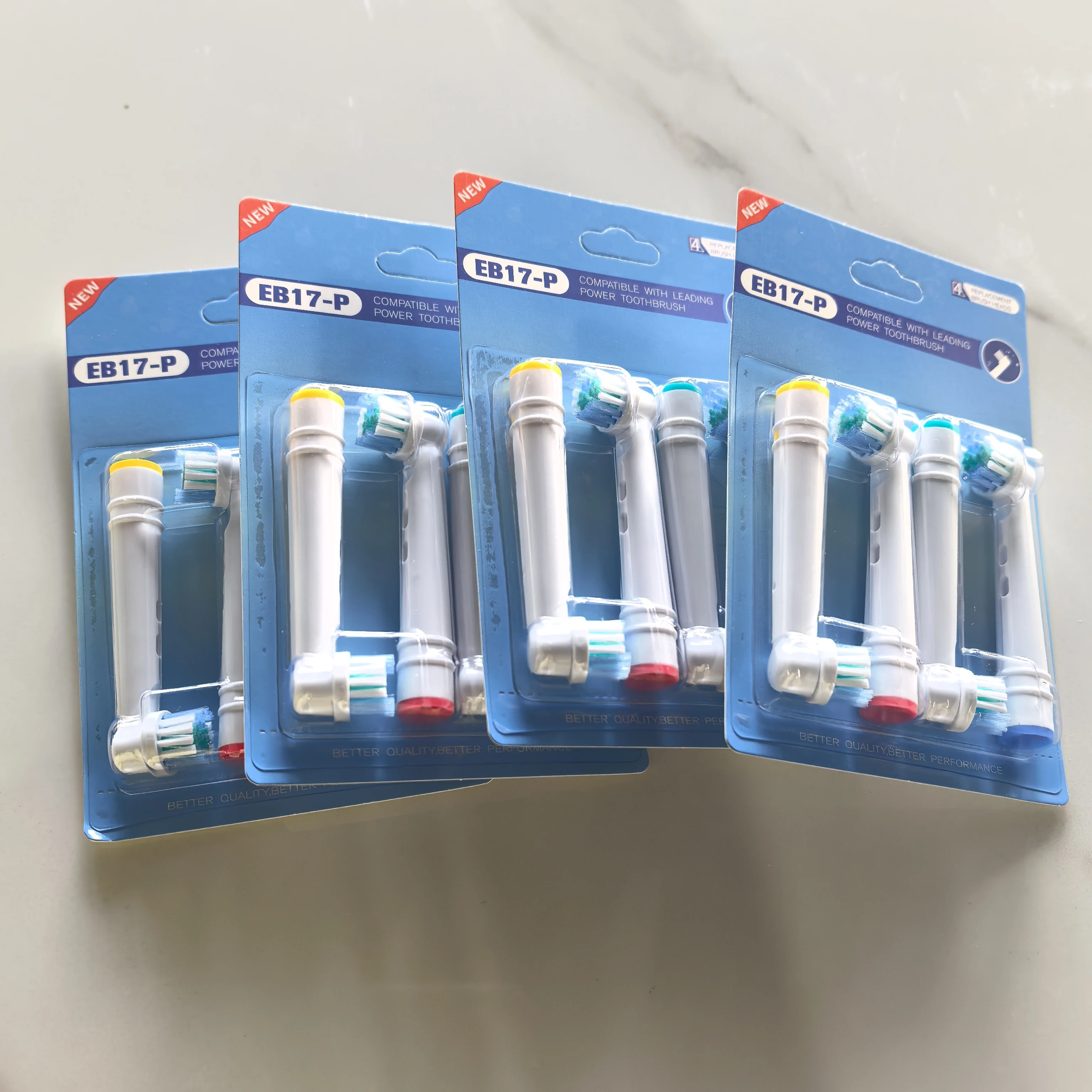 B: 16 cabezales de cepillo de dientes.