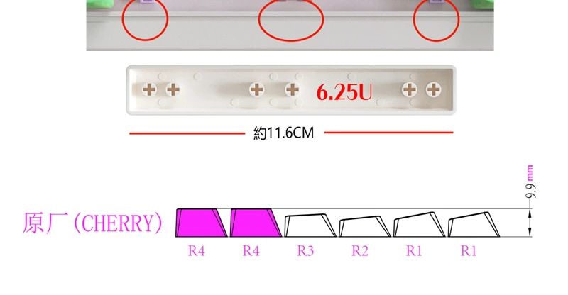 1. El tamaño de estas 3 teclas es 1U 2.25U 6.25U, generalmente las instalamos en la entrada de ESC y en la posición de espacio, así que asegúrese de que sean del tamaño correcto para su teclado, gracias