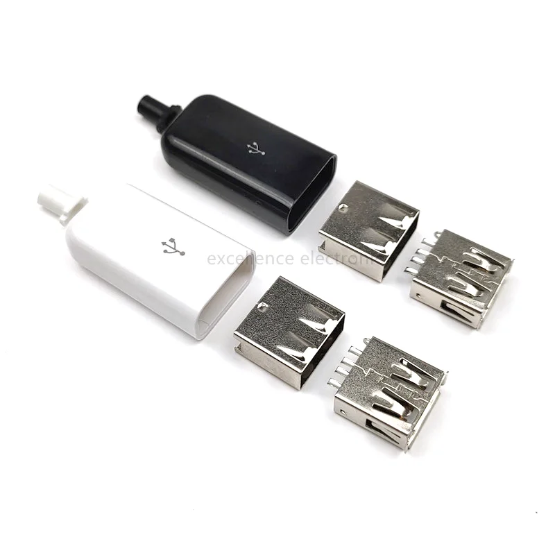 Comprar Juego de 4 conectores USB 3 en 1, adaptador de enchufe de soldadura hembra tipo A, color blanco y negro