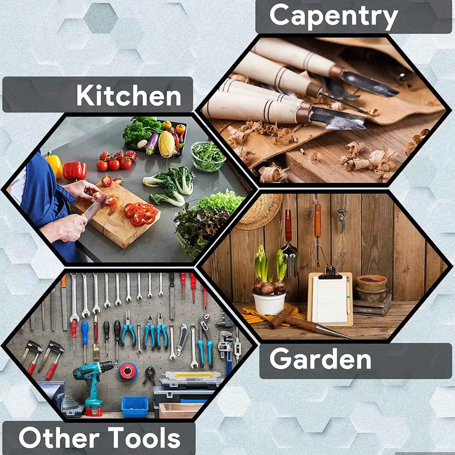 MATERIAL DE DIAMANTE PREMIUM: estas piedras de afilar están hechas de material de diamante de alta calidad y son lo suficientemente duraderas como para durar años. El cuerpo de alta resistencia le da a la piedra una mayor durabilidad, haciéndola más delgada y ligera. Afilador de cuchillos multitarea: este juego contiene 4 tipos diferentes de grano para satisfacer sus diversas necesidades de afilado, como cuchillos de cocina, herramientas de carpintero, cuchillos de cerámica, cinceles. Todas las piedras tienen un diseño de panal para un afilado eficiente. FÁCIL DE USAR: el afilador tiene una base antideslizante para un fácil control y uso. Tiene una gran cara de 5,9x2,5 pulgadas y una hoja más ancha para herramientas de formas específicas. No lo ponga en el lavavajillas ni lo sumerja en agua. Resistente y bebible-Debido a la mayor dureza, el afilador se puede convertir en un cuerpo delgado y ligero. En comparación con otros afiladores de piedra, estos afiladores de diamantes son muy portátiles y fáciles de guardar en su bolsa. Color: plateado Material: Diamante Tamaño: 150x63x3mm Contenido del paquete: 4 x placas de afilado de diamante Solo el contenido del paquete anterior, otros productos no están incluidos. Nota: La luz y las diferentes pantallas pueden hacer que el color del artículo en la imagen sea un poco diferente del real. El error de medición permitido es +/- 1-3cm.