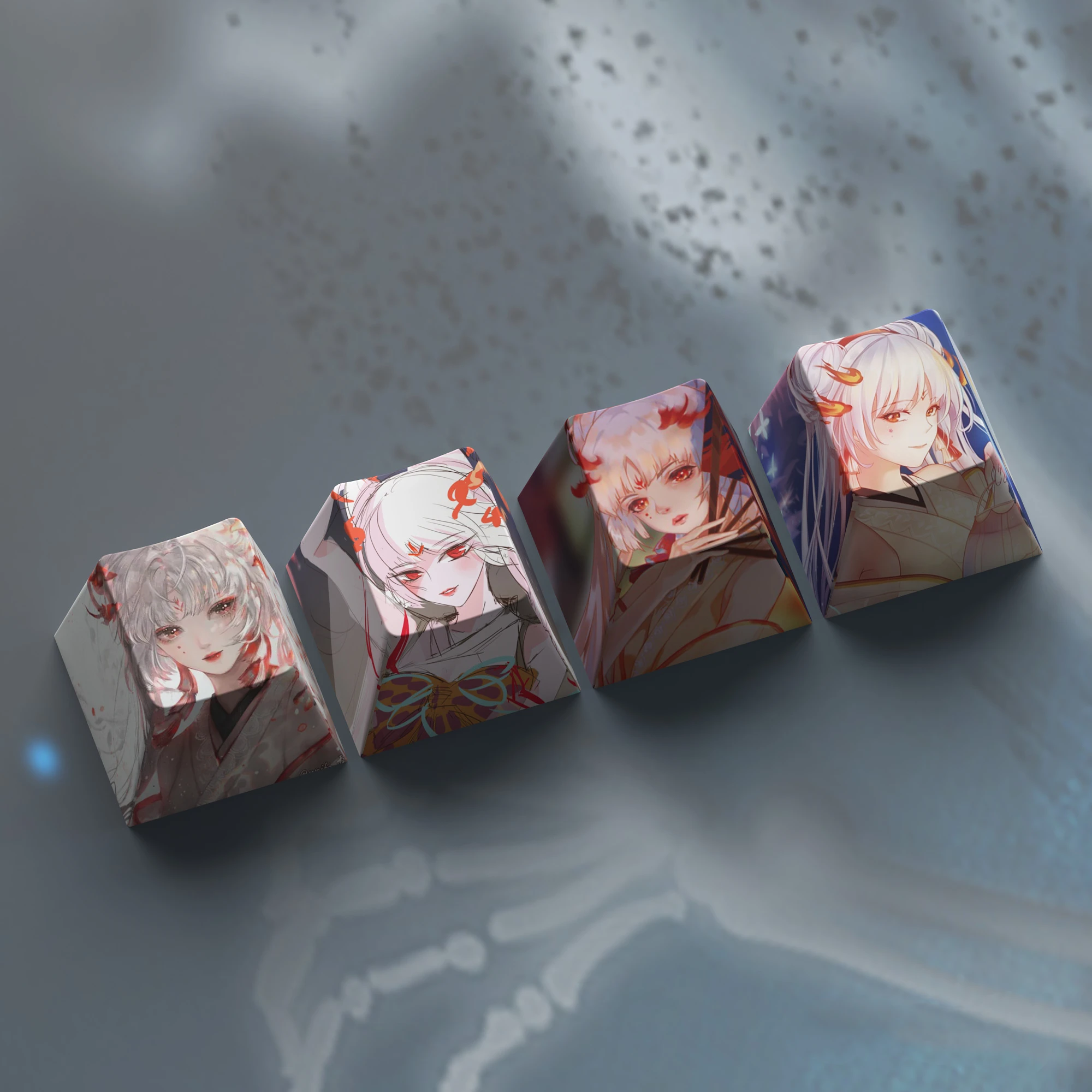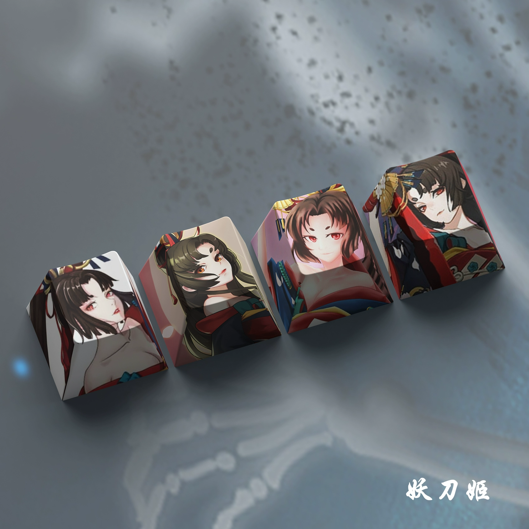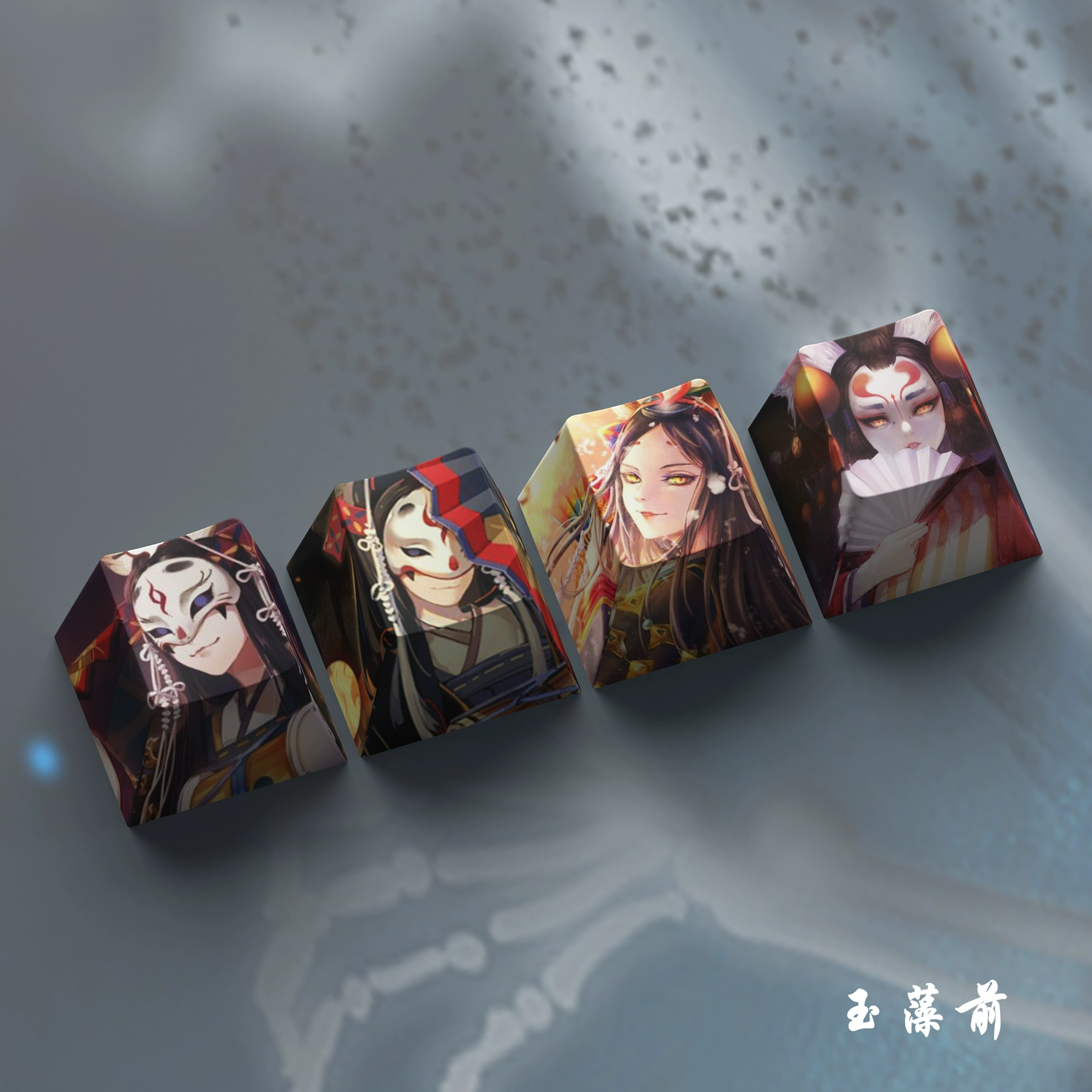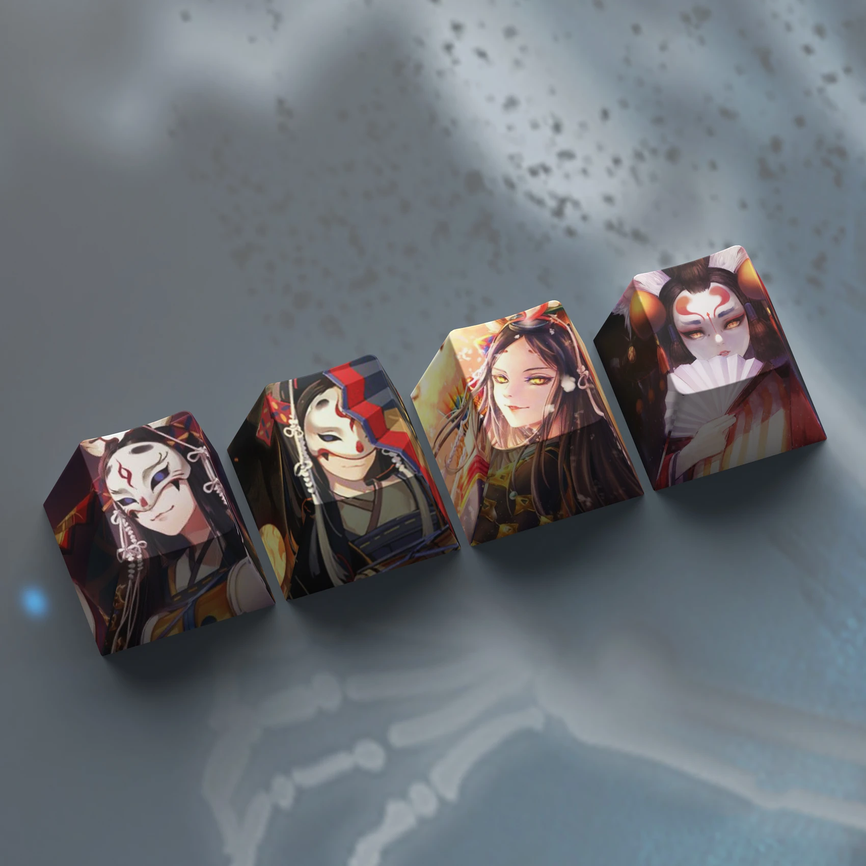 Comprar Juego de 4 teclas Onmyoji, teclas de sublimación de tinte PBT para interruptores MX, teclado mecánico, teclas de perfil Cherry