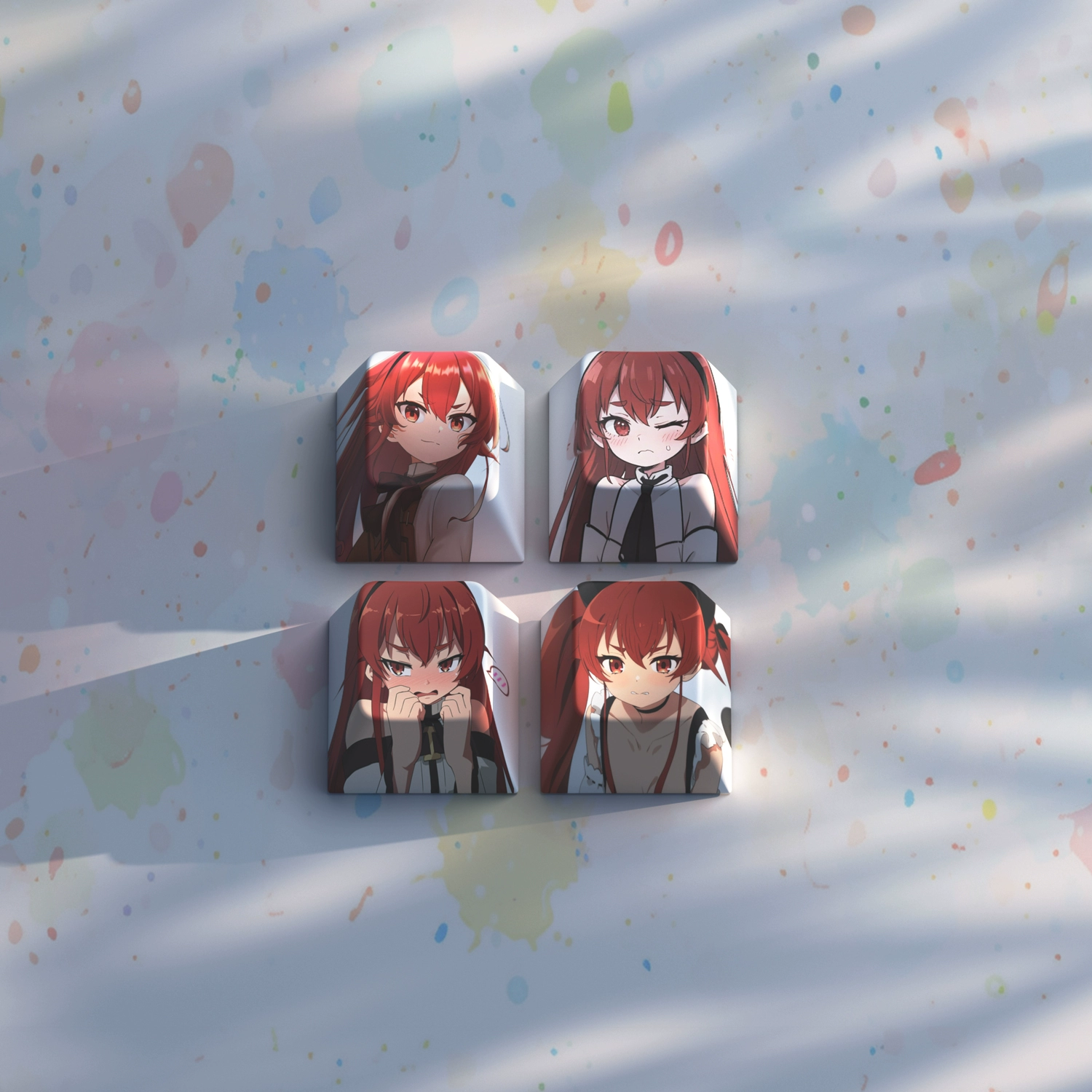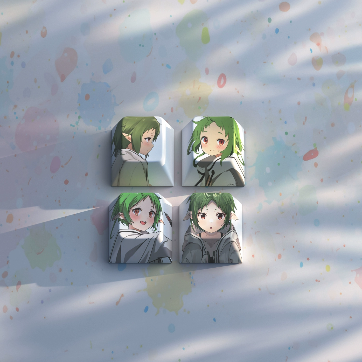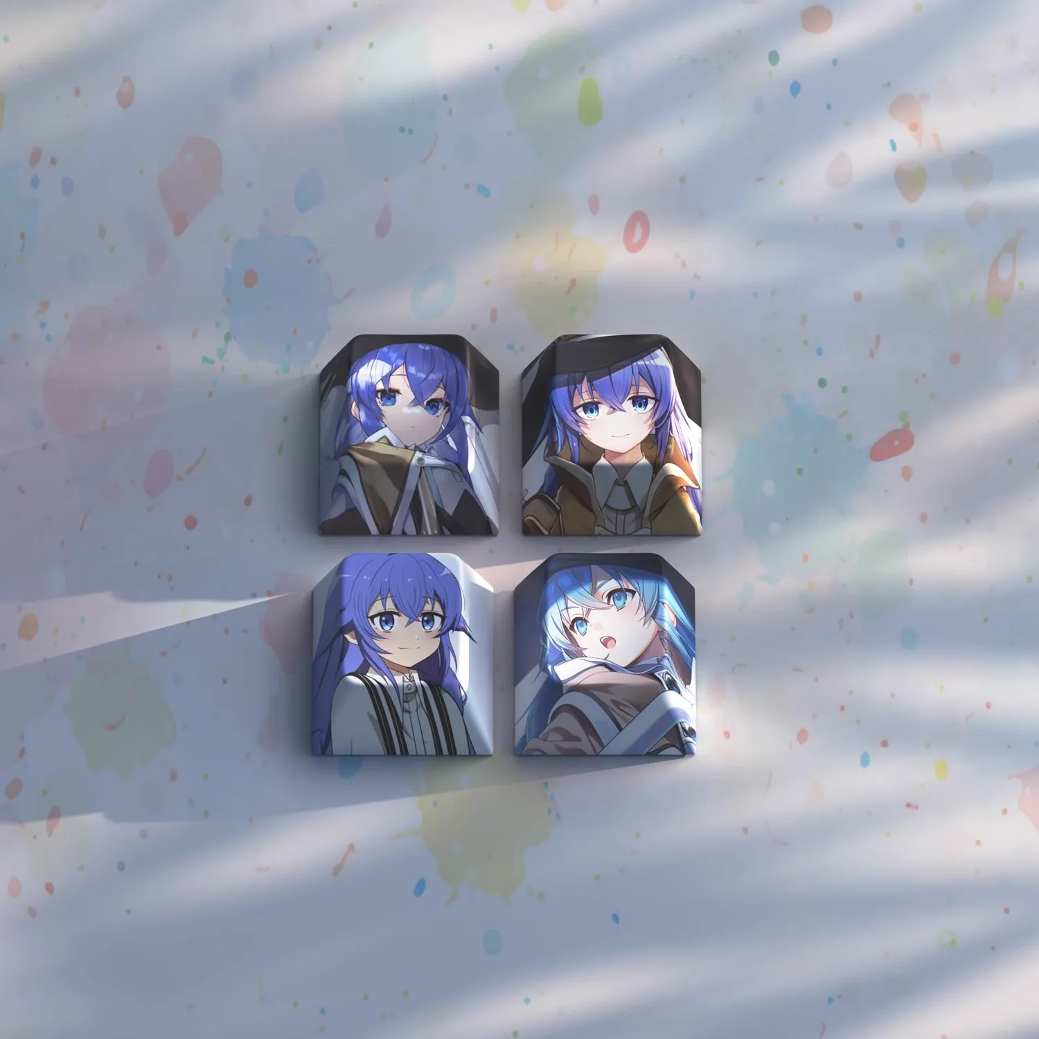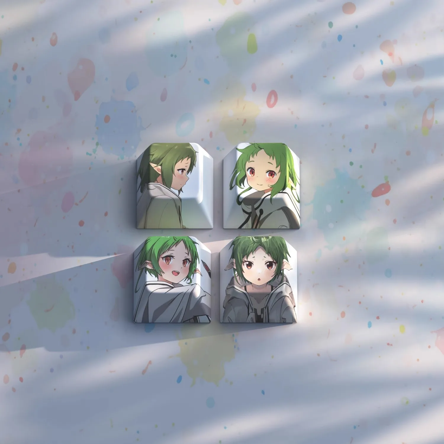 Juego de 4 teclas de reencarnación sin empleo, teclas subcama de tinte PBT, perfil de cereza, teclas de juego de dibujos animados de Anime para teclado MX Switch