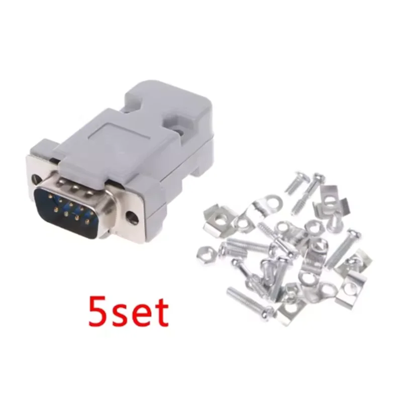 Comprar Juego de 5 conectores de puerto serie RS232 DB9, conector hembra macho, adaptador COM RS232 de cobre de 9 pines con caja de plástico DIY
