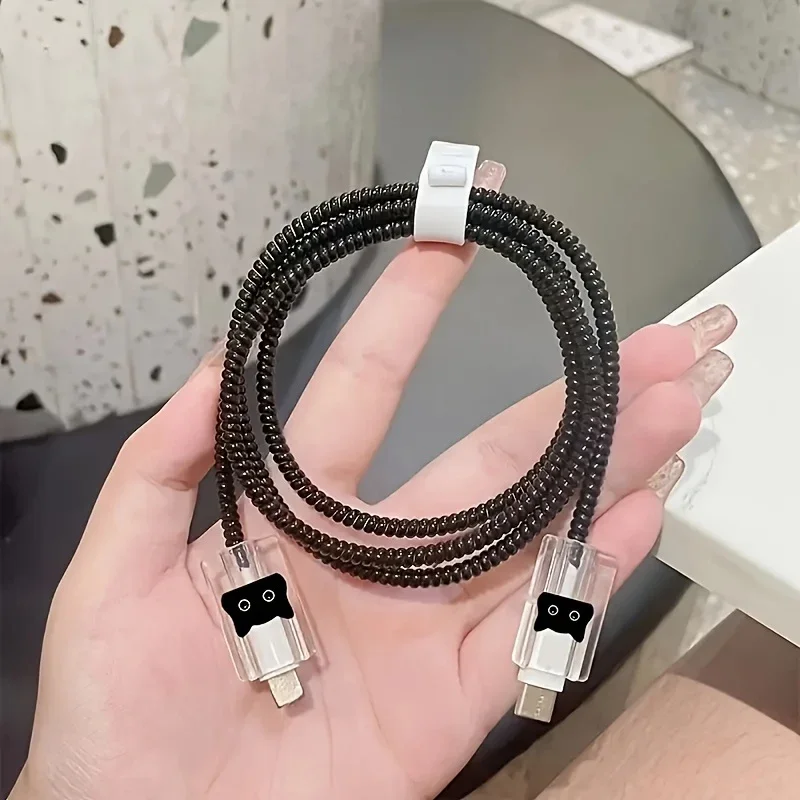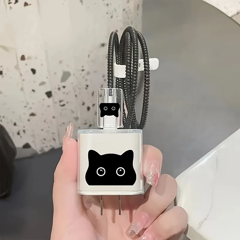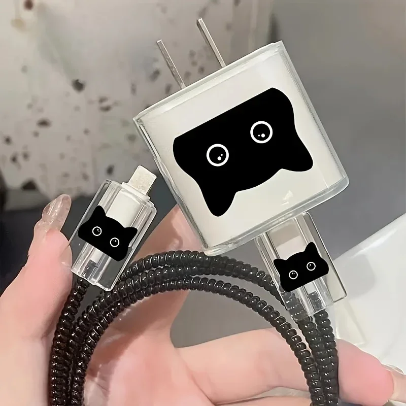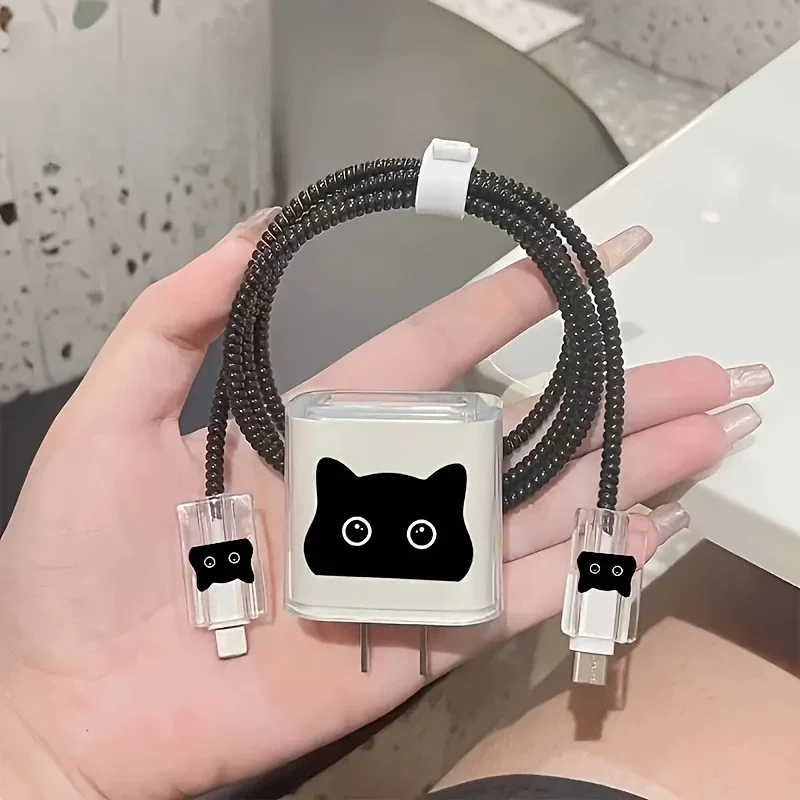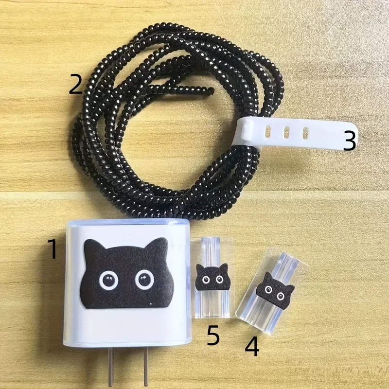 Comprar Juego de 5 piezas de accesorios enrolladores protectores de Cable de datos de carga de gato negro para iPhone 18/20w cubierta protectora de cargador