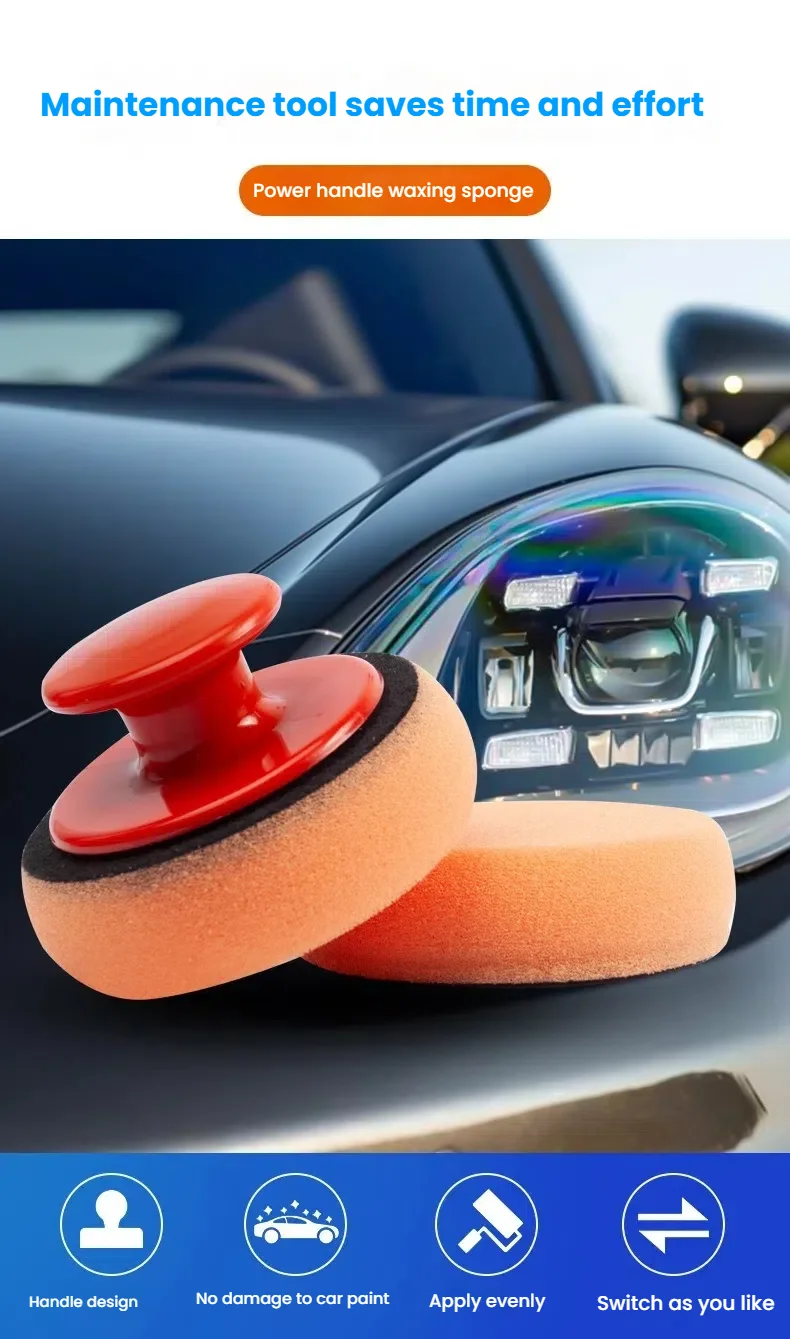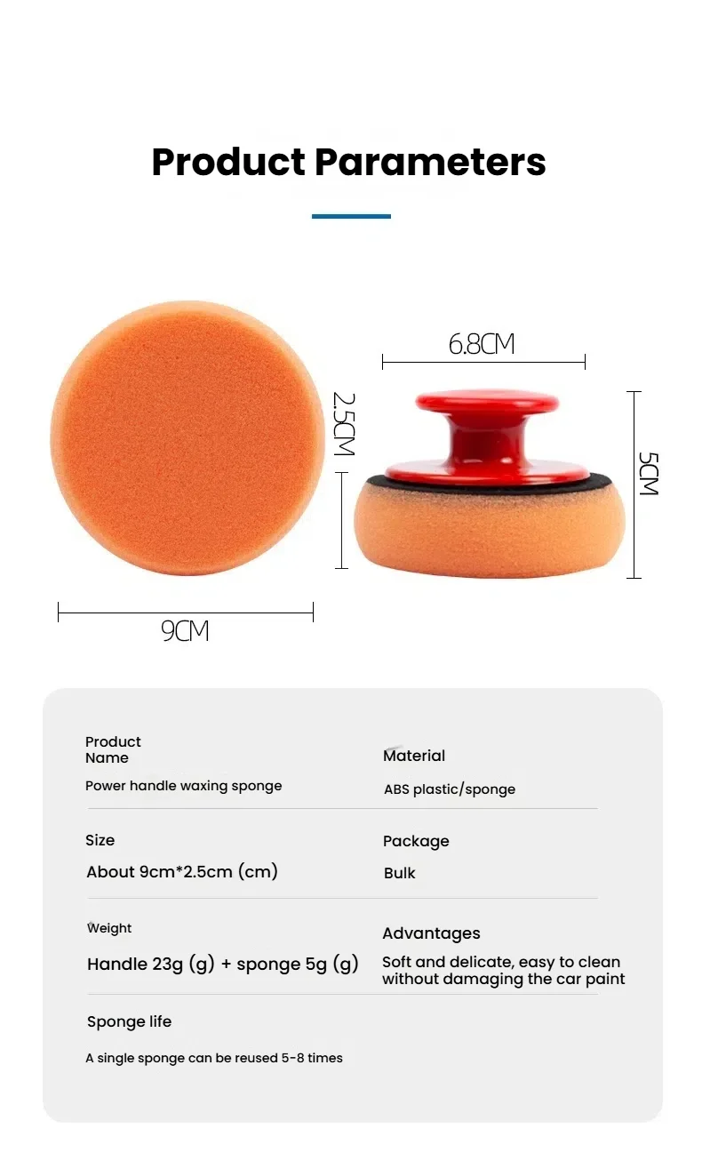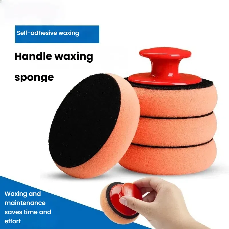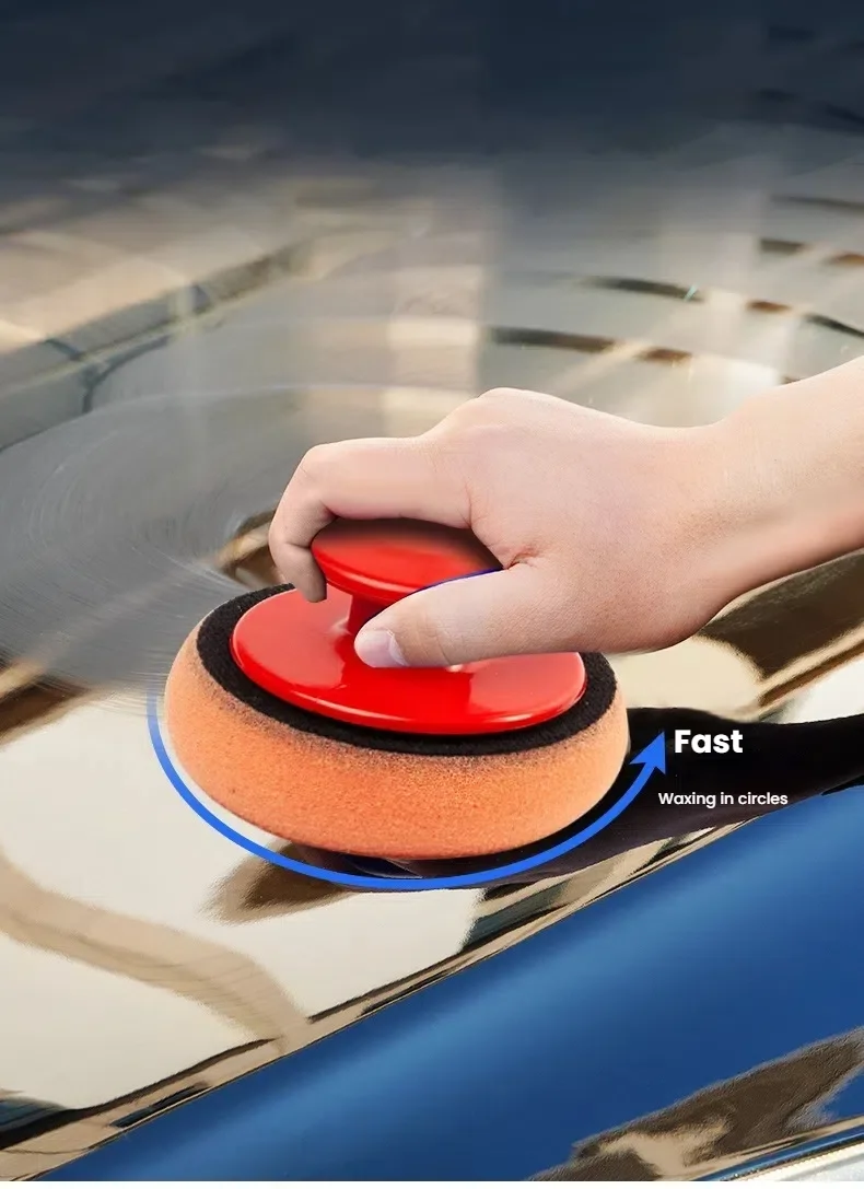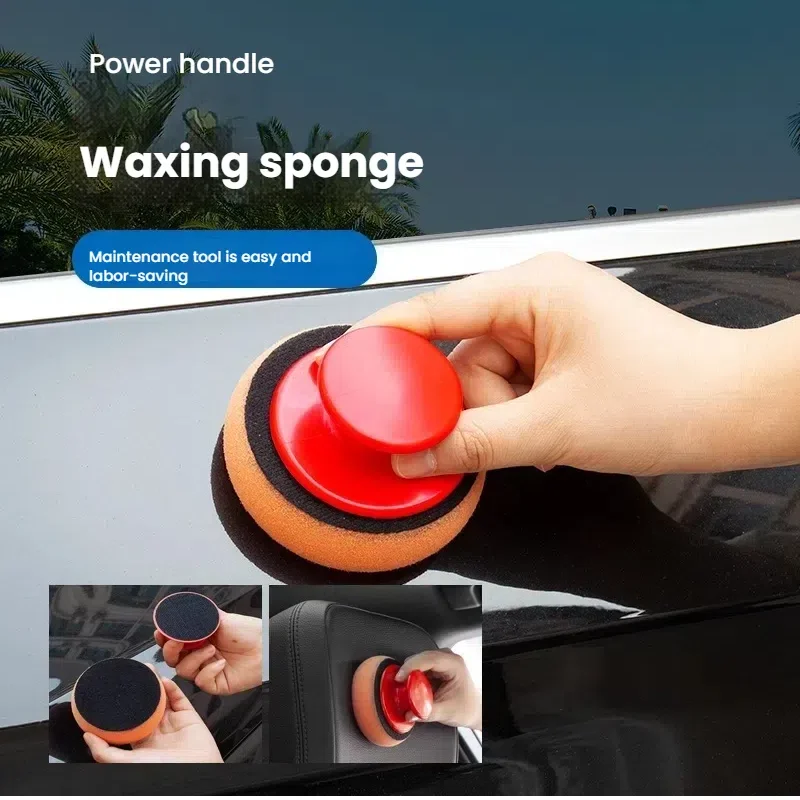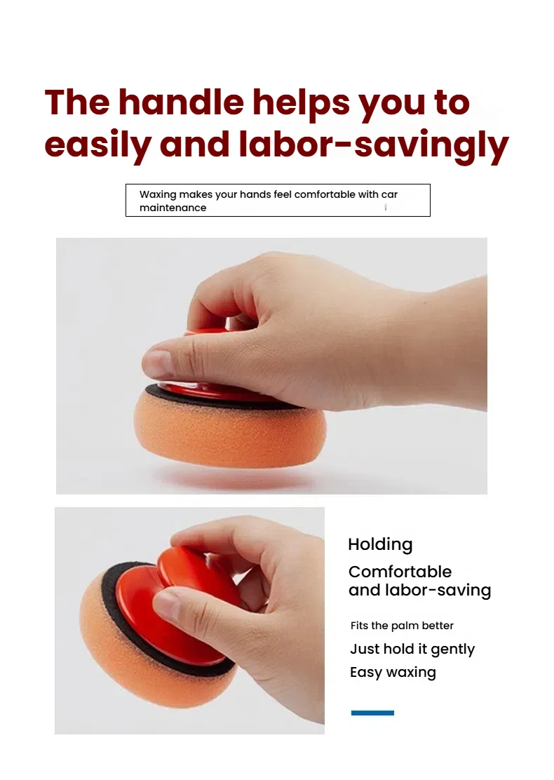 Juego de almohadillas aplicadoras de cera para coche con mango rojo, aplicadores de esponja suave, almohadilla de cera de espuma para pulir y limpiar coches