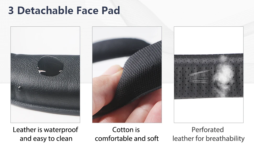 【 3 almohadillas faciales de cuero PU desmontables, este kit de reemplazo de almohadilla facial Oculus Quest 2 incluye 1 almohadilla facial de cuero a prueba de sudor, 1 almohadilla facial de cuero con agujeros transpirables y 1 almohadilla facial de tela suave y transpirable. 3 almohadillas de espuma de cuero PU desmontables diferentes mejoran la higiene, la inmersión y la comodidad cuando juegas, mejorando tu experiencia de realidad virtual.