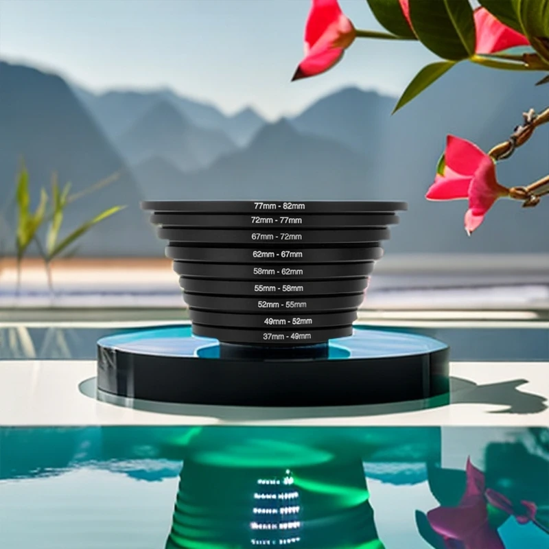 18 piezas El adaptador del anillo de la lente se atornilla fácilmente en la parte frontal de cualquier lente y convierte el tamaño de rosca de su lente al tamaño de rosca de cualquier otro accesorio (como filtros, parasoles, flashes y convertidores de lentes).
