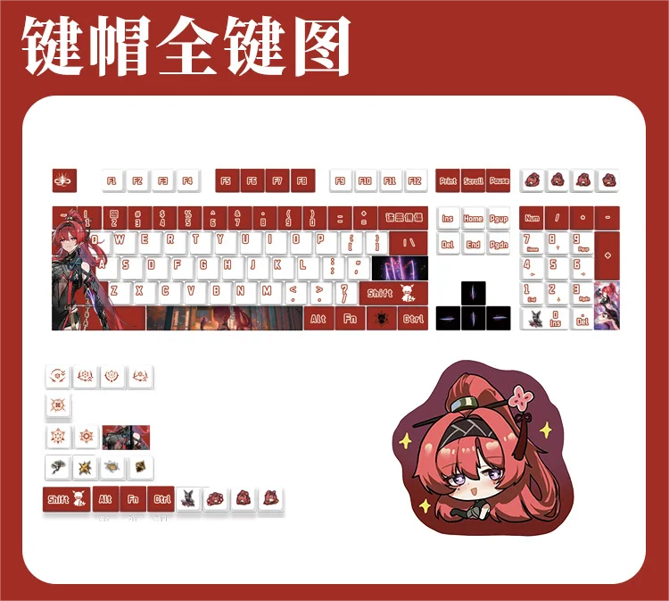 Material: PBT (superficie seca, textura clara, resistente a la corrosión, resistente al desgaste, no grasa, puede mantener las mejores condiciones durante mucho tiempo)