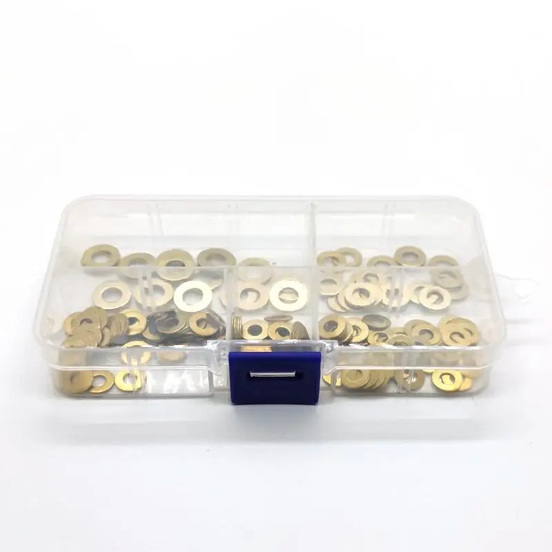 La arandela plana se utiliza para reducir la fricción, evitar fugas, aislar, evitar que se afloje o dispersar la presión. Proporciona una protección estable para la superficie de las piezas conectadas. Estas juntas están hechas de material de latón, a prueba de herrumbre y anticorrosión, firmes y duraderas. Este kit viene con arandelas en 8 tamaños para satisfacer sus diferentes necesidades. La caja de plástico incluida tiene múltiples compartimentos que mantienen estas arandelas ordenadas por tamaño y le permiten encontrar fácilmente la adecuada.