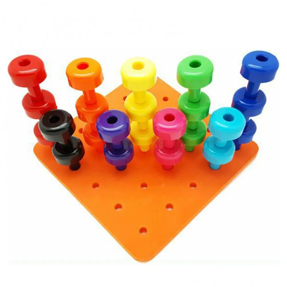 Bloques de construcción de uñas de aprendizaje temprano para niños creativos, juego de tablero de clavijas apilables para niños pequeños