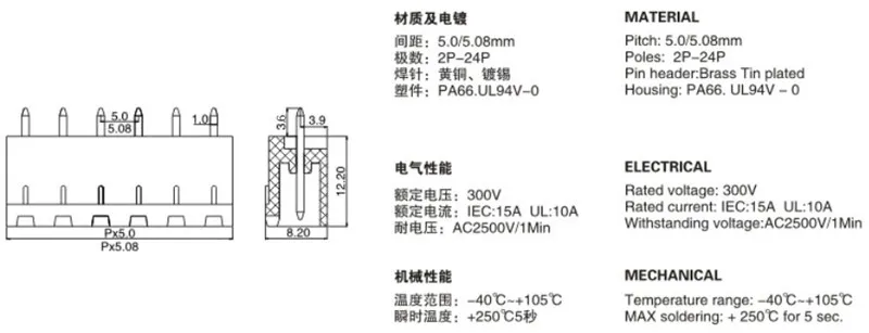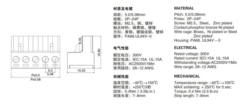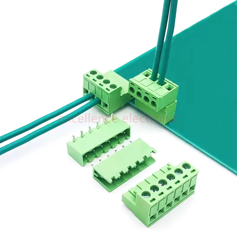 5 Juegos 5,08 Pcb bloque de terminales de tornillo 2/3/4/5/6/7/8/9/10Pin conector de terminal de aguja curva recta tipo 15A 5,08mm conector de paso