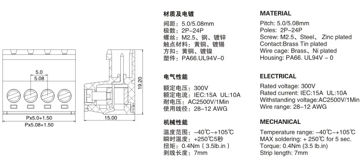 5 Juegos de bloques de terminales enchufables de 5,08 MM conector KF2EDGKR 5,08 estilo de tope 2/3/4/5/6/7/8 Pin terminal de tornillo