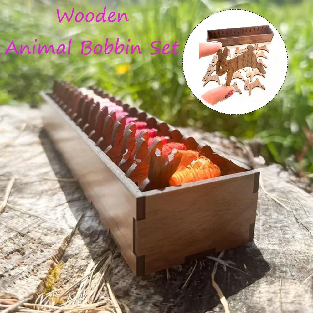 Comprar Juego de bobinas de animales de madera, organizador de hilo de bordar, organizador de hilo de coser