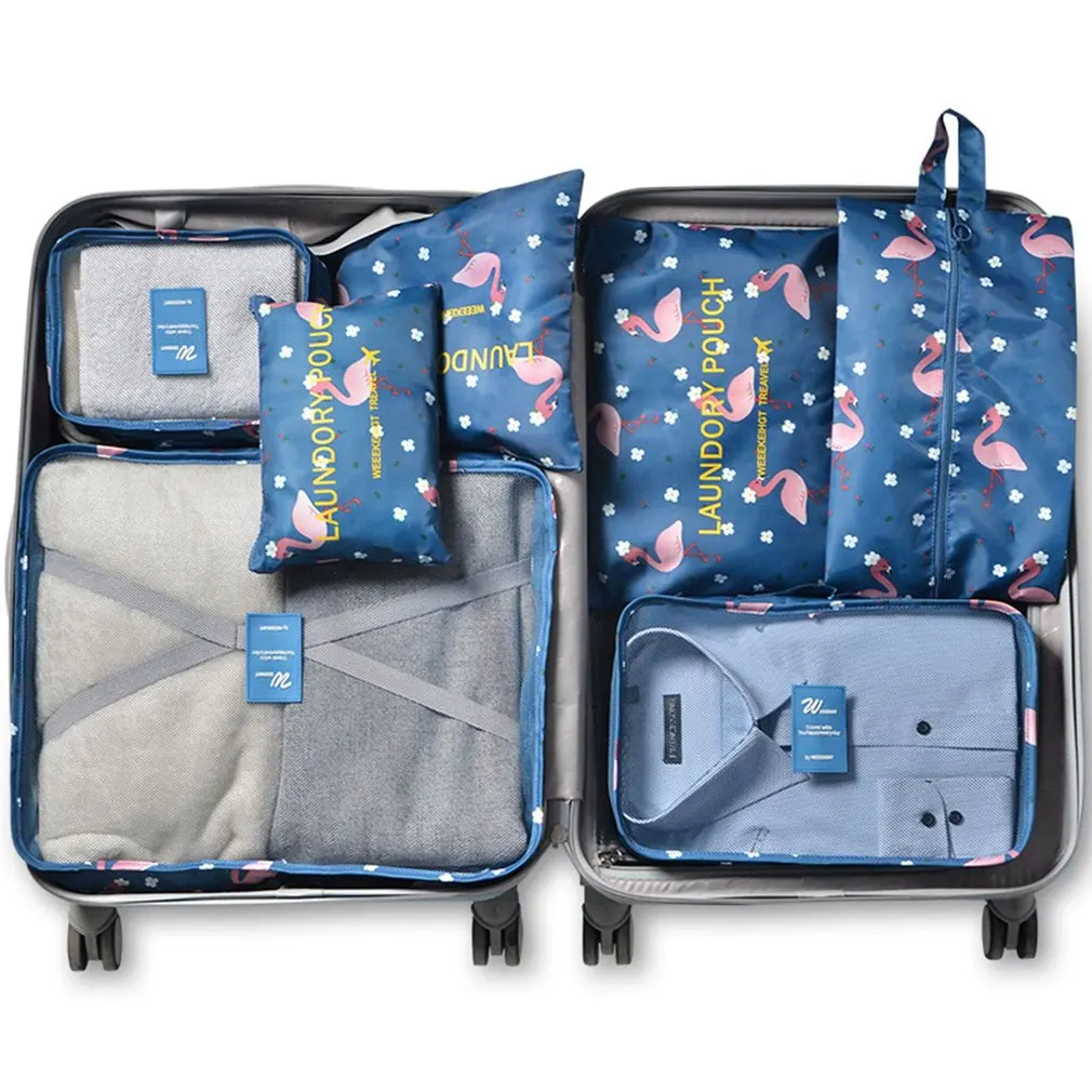 Comprar Juego de bolsas de almacenamiento de acabado para equipaje de viaje, bolsa organizadora de clasificación de ropa, Maleta, 7 Uds.