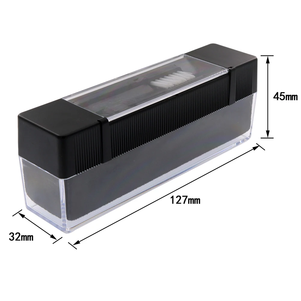 Especificación: Material: esponja de terciopelo + ABS Color: negro Tamaño: 127*45*32mm Ámbito de aplicación: disco de vinilo, VCD, DVD