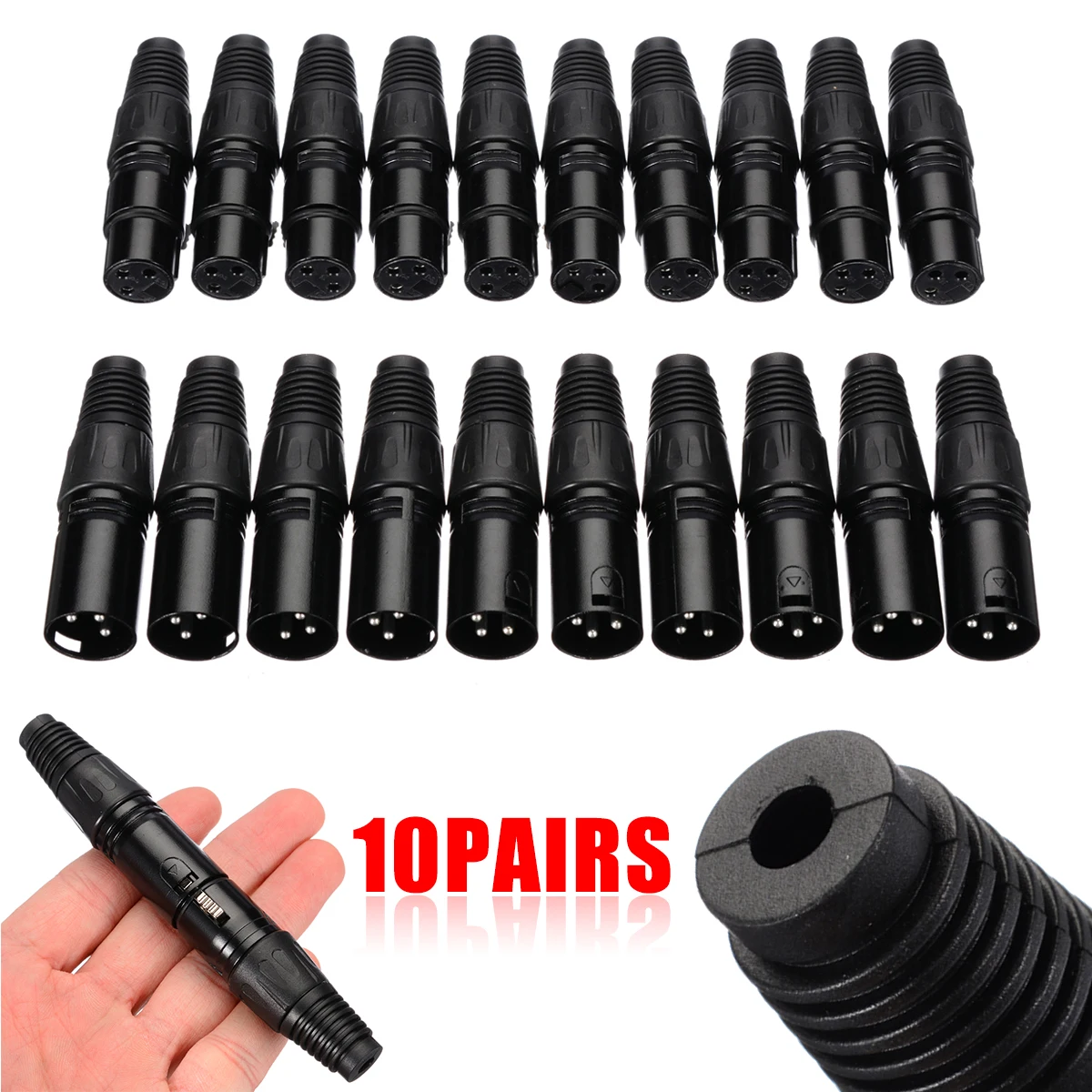 10 pares de conectores de enchufe de cables de audio de micrófono (10X macho + 10X hembra)