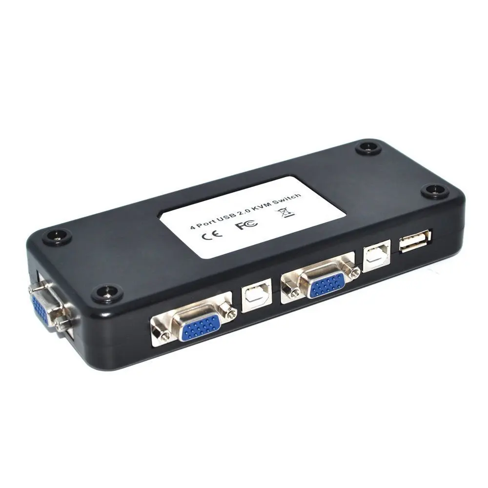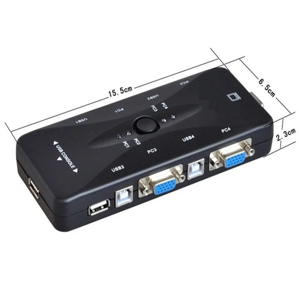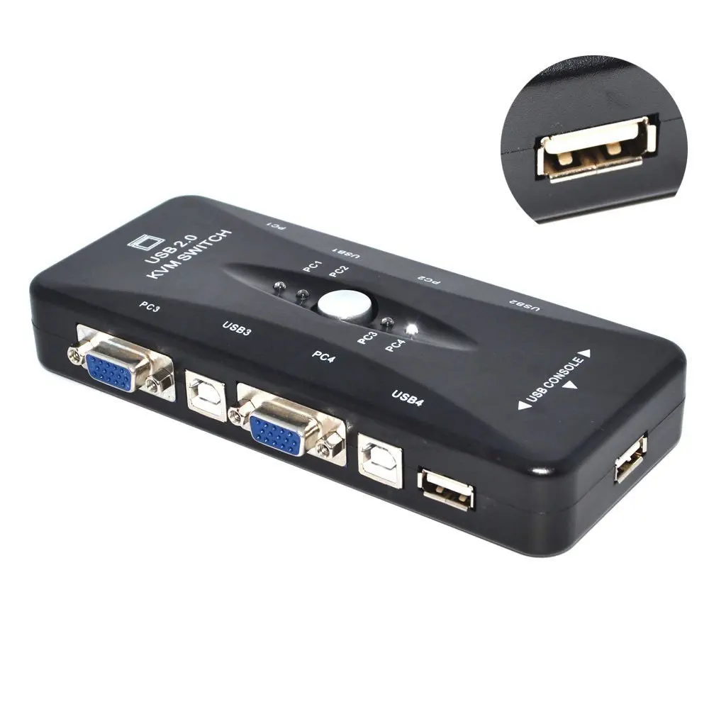 1 Juego de 4 Cables de interruptor KVM + Hub 4 puertos USB 2,0 KVM VGA/SVGA Switch Box adaptador conecta impresora teclado ratón 4 ordenadores
