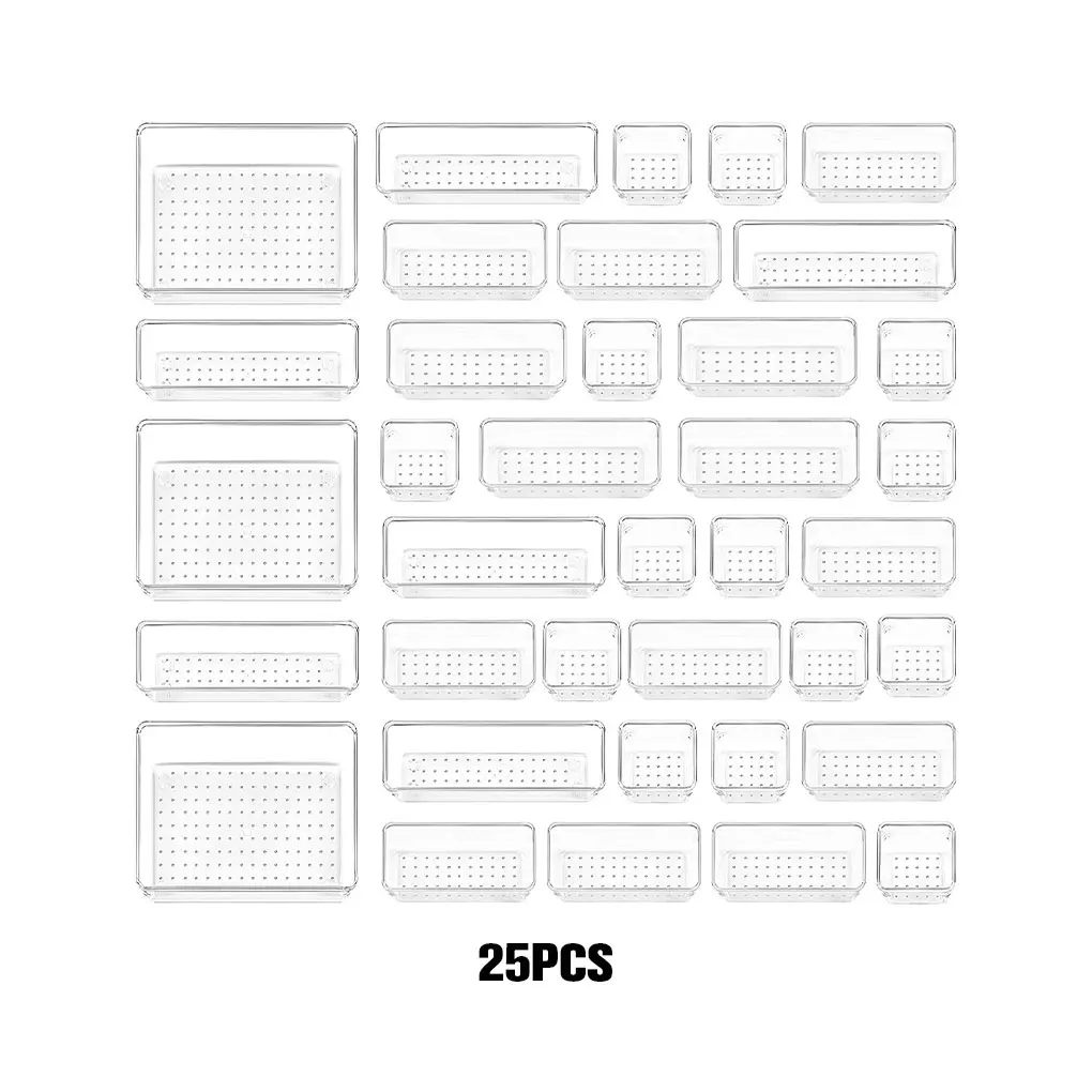 Cajón de almacenamiento transparente de PET, caja de almacenamiento de 25 piezas