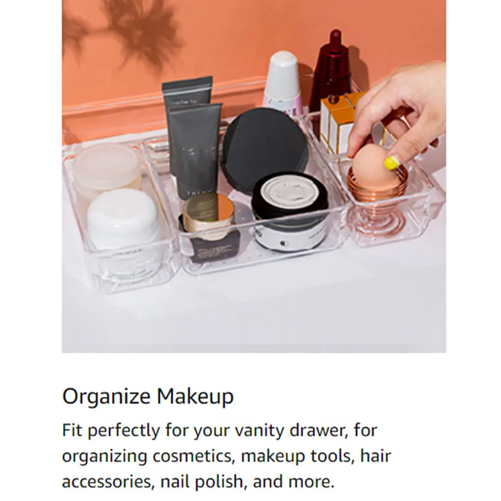 Amplia aplicación: adecuado para todos los cajones, estos organizadores se pueden utilizar para almacenar una variedad de artículos, desde productos de maquillaje hasta papelería y artículos diversos. Mantenga todo ordenado y fácil de localizar.