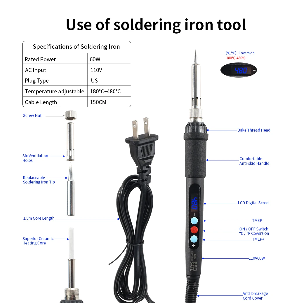 2) Cuando el soldador eléctrico está encendido, genera altas temperaturas y es fácil de quemar, por lo que es peligroso.Preste atención a la seguridad al usarlo.