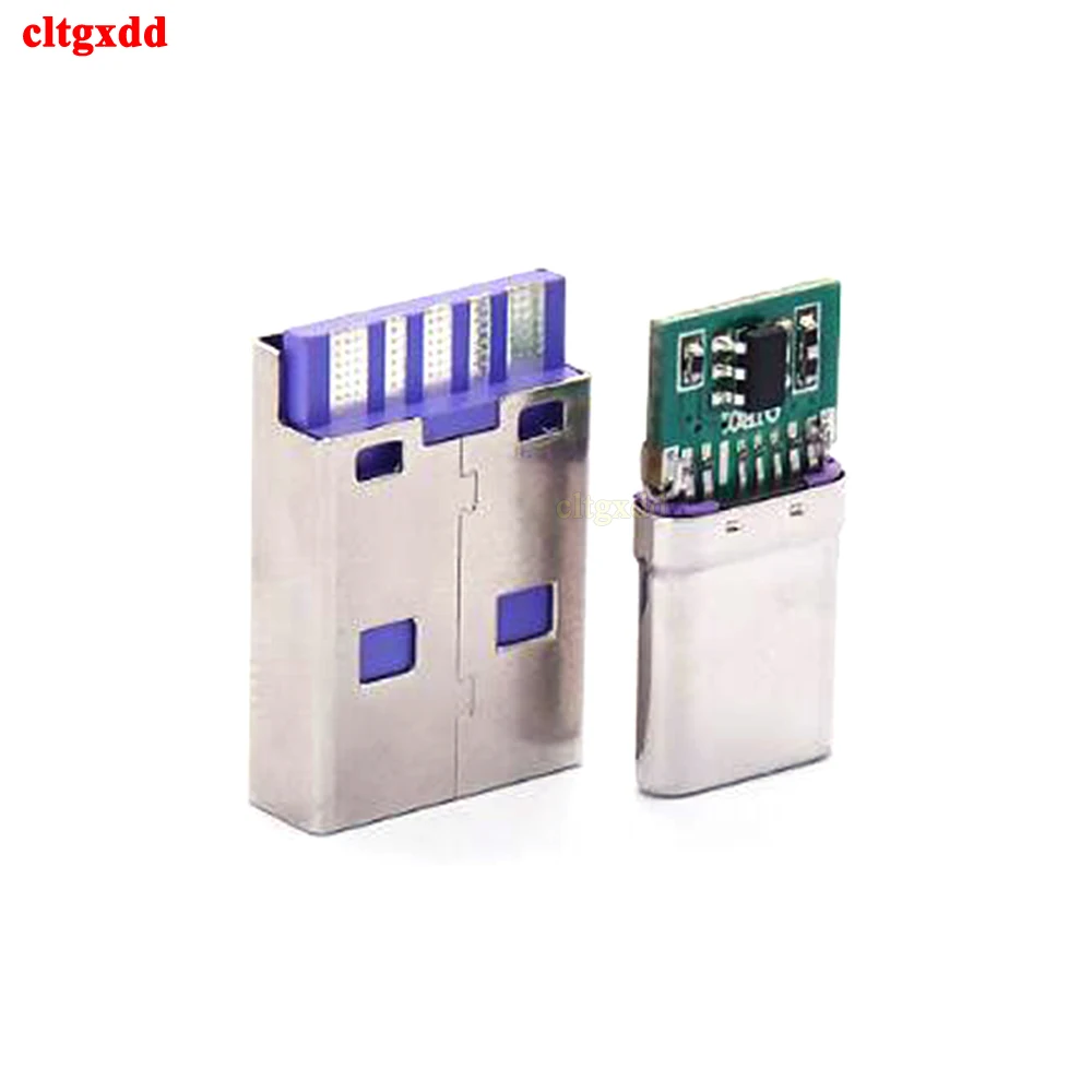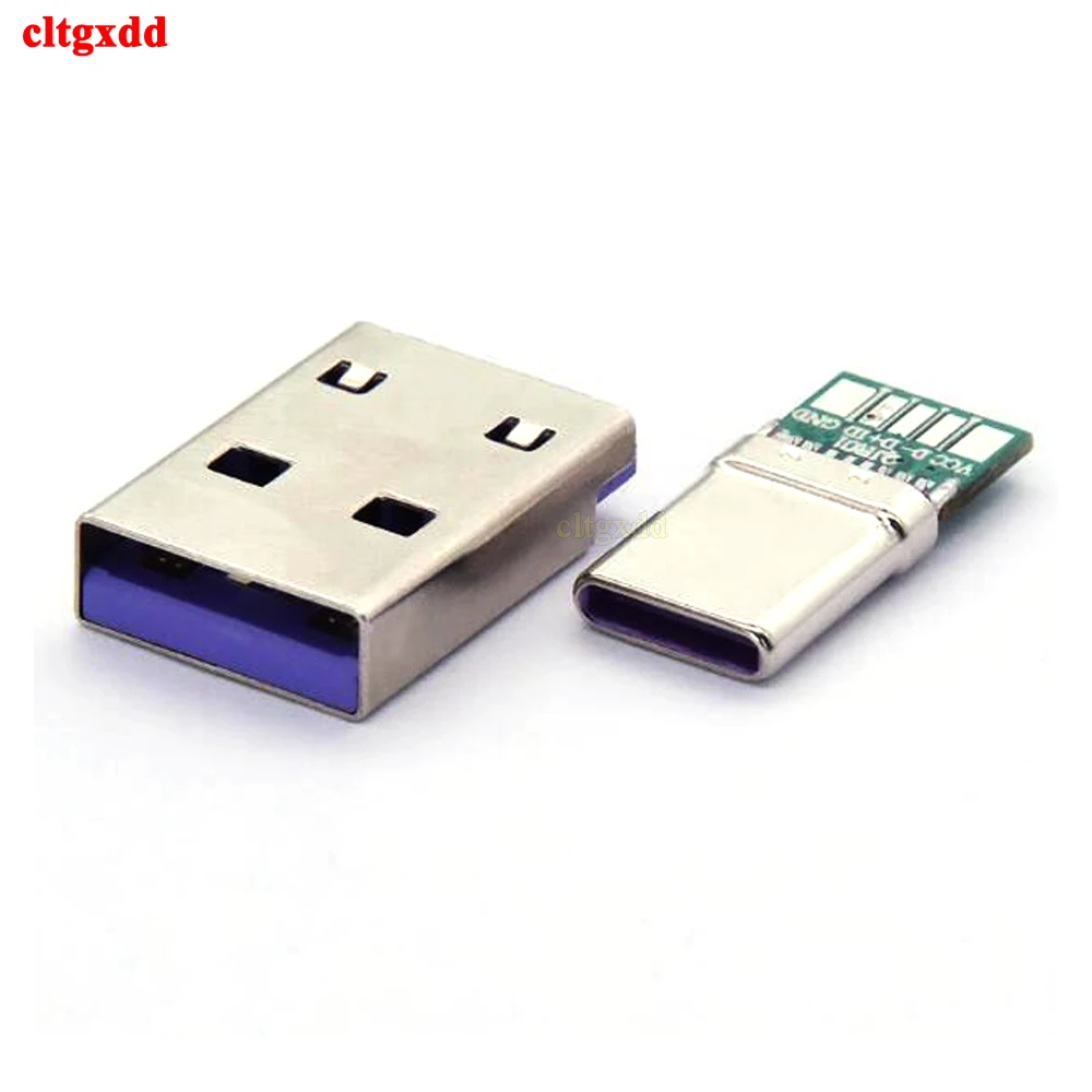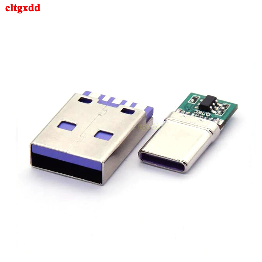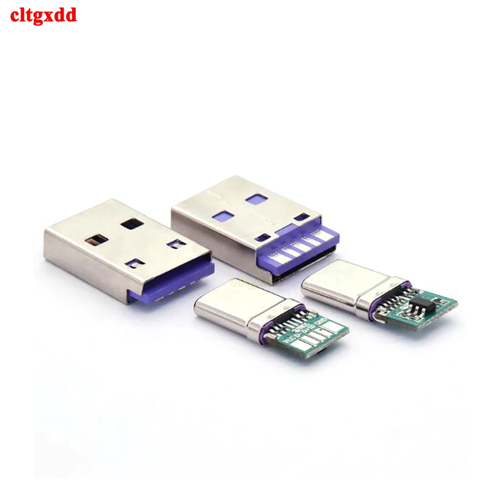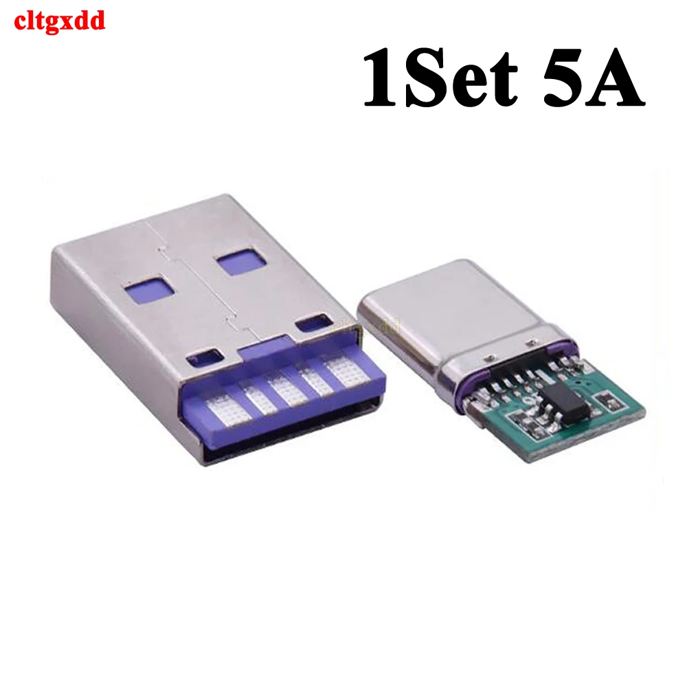 Comprar Juego de carga rápida USB tipo C, 65W, 5A, conector macho de soldadura con PCB de 5 pines + USB tipo A macho de 6 pines, KIT de carga de datos OTG DIY, 1 Juego