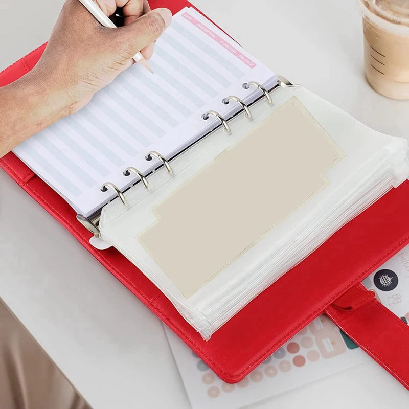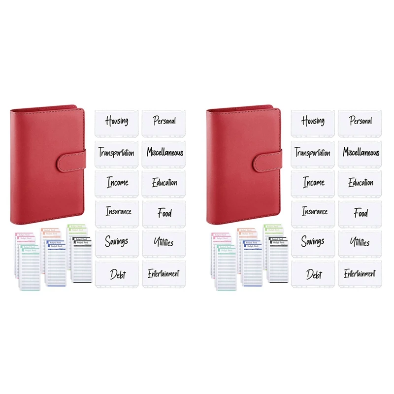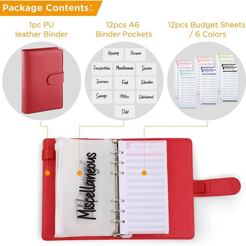 Juego de carpetas presupuestarias de cuero PU A6 de 50 piezas, carpeta de planificador Personal para ahorro de dinero Sistema de sobres en efectivo rojo