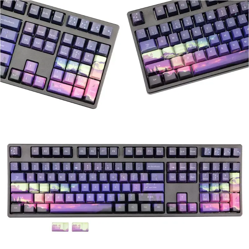 Comprar Juego completo de 110 teclas OEM PBT, teclas de teclado mecánico, 5 lados, sublimación púrpura, luz del amanecer