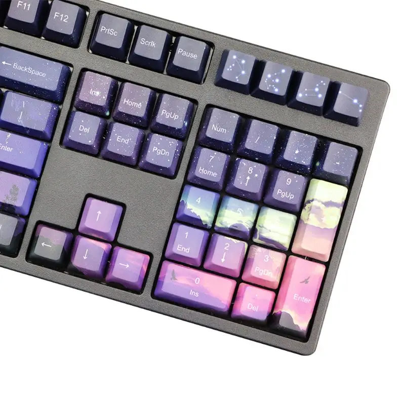 -Tapa de la tecla de sublimación PBT: el color ha penetrado en la tapa de la llave, la vida útil de hasta diez años no se desvanecerá, puede estar seguro de usar y disfrutar del diseño de la llave.