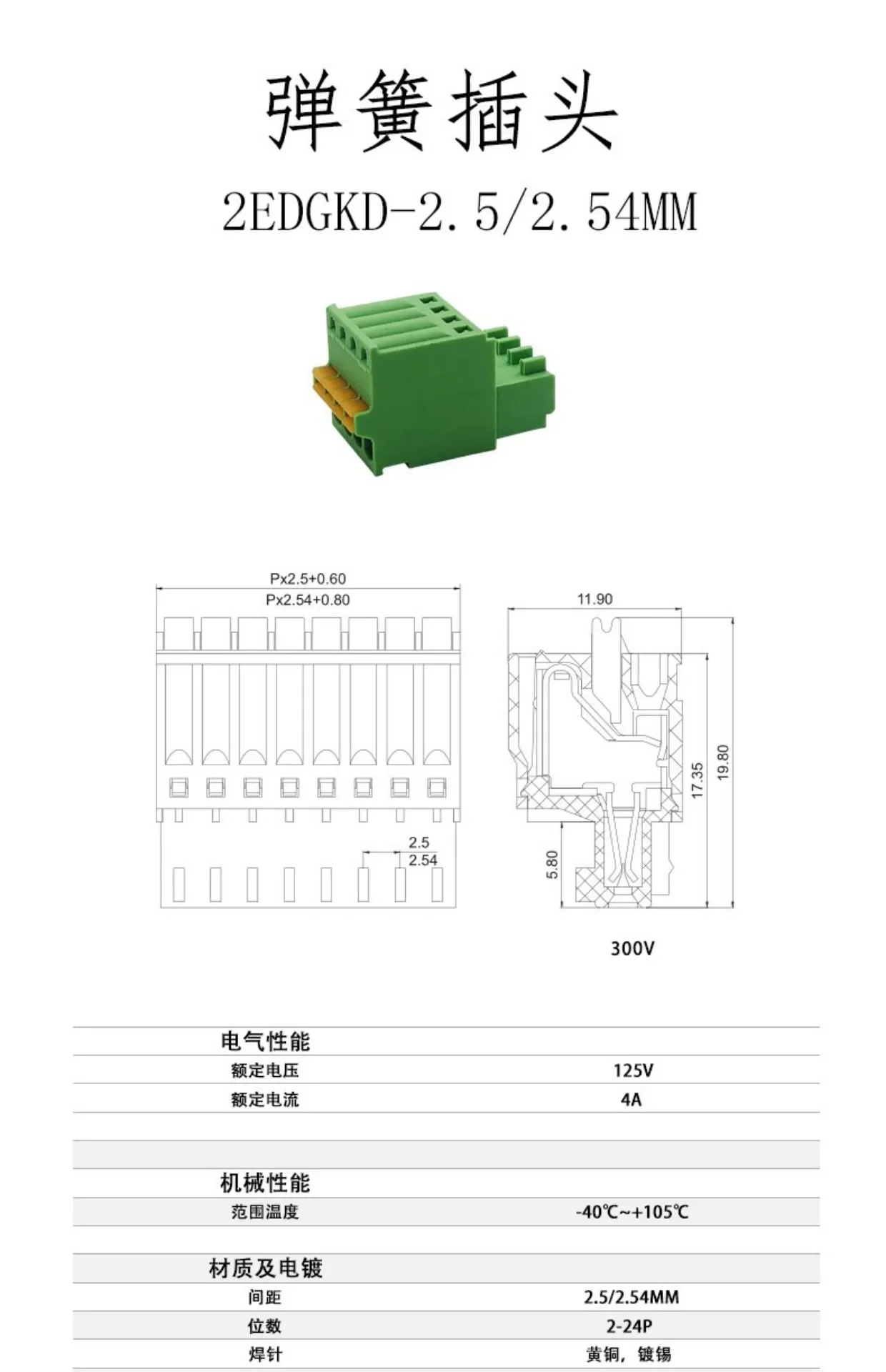 Comprar Juego completo (base hembra + enchufe) sin soldadura, sin tornillo, 15edgkdp-2. 5mm, terminal de enchufe, muelle de presión, acoplamiento 2EDGKD