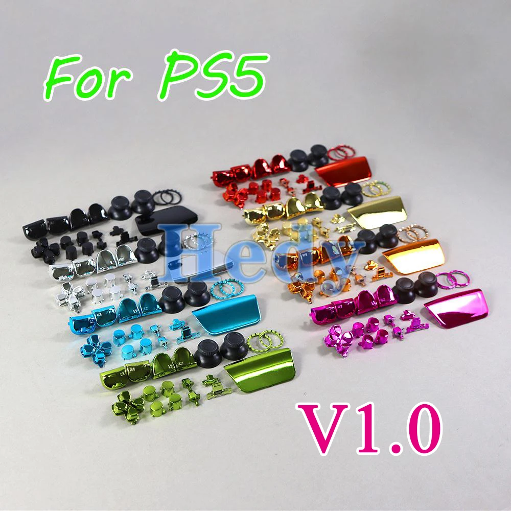 Juego completo de botones cromados para PS5 V1, manija, Pulgar, Sticks, tapa de Joystick L1 R1 L2 R2, botón d-pad para controlador ps5.