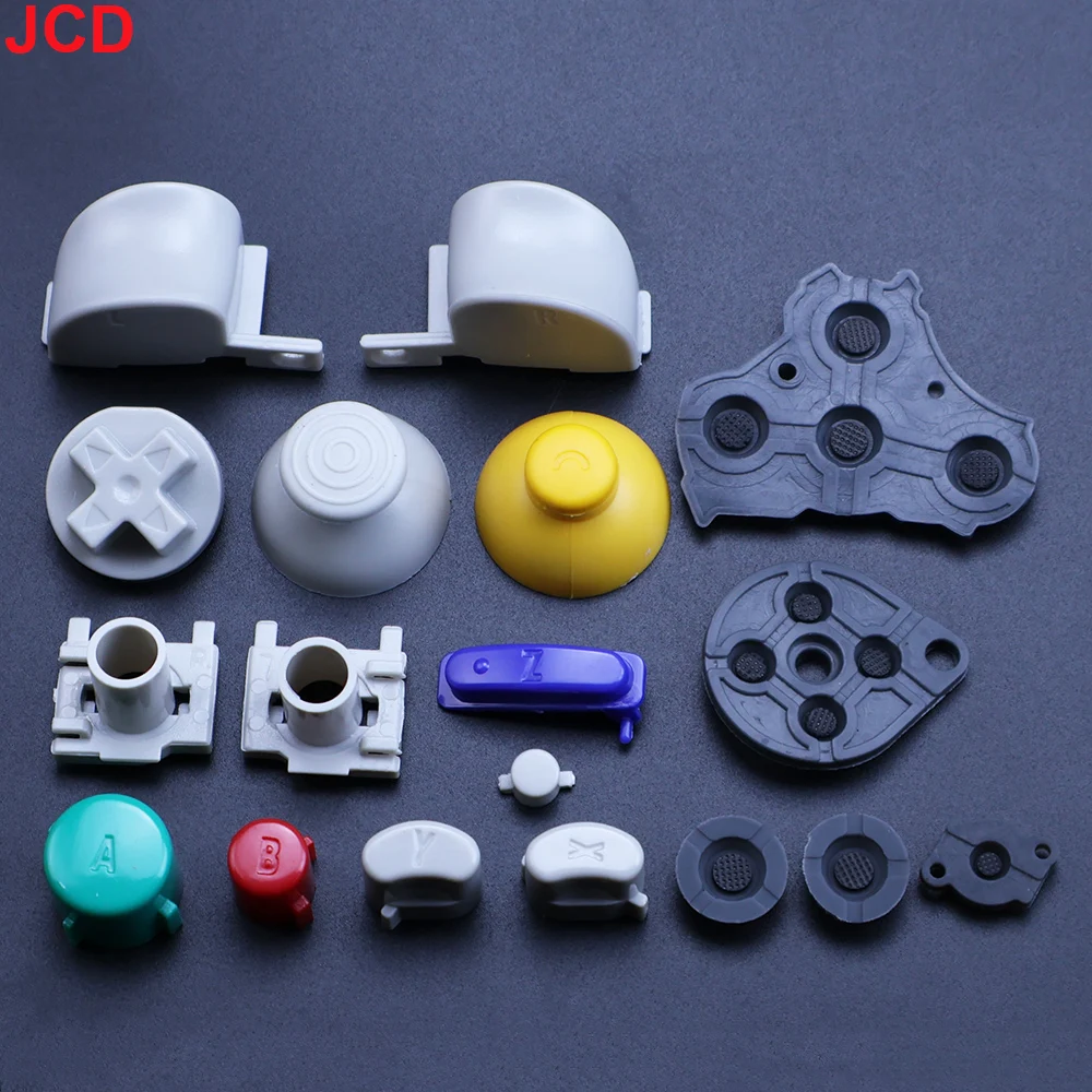 Botones completos JCD para Gamecube L R, botones de gatillo, botones ABXY de almohadilla, Kit de modificación conductora de goma para Control de mando Nintend NGC