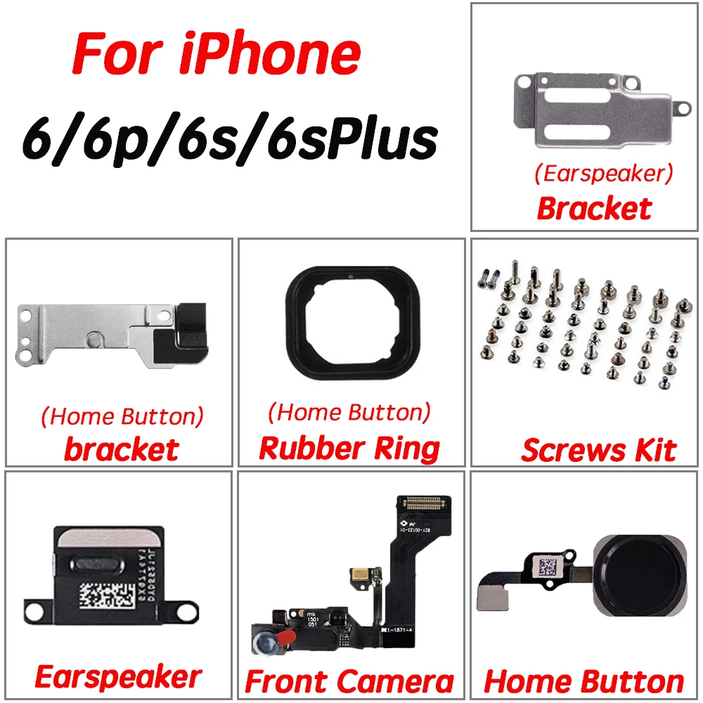 Juego completo de piezas Lcd para iPhone 6 6P 6s Plus, cámara frontal, botón de inicio, Cable flexible, tornillos para altavoz, Kit de repuesto