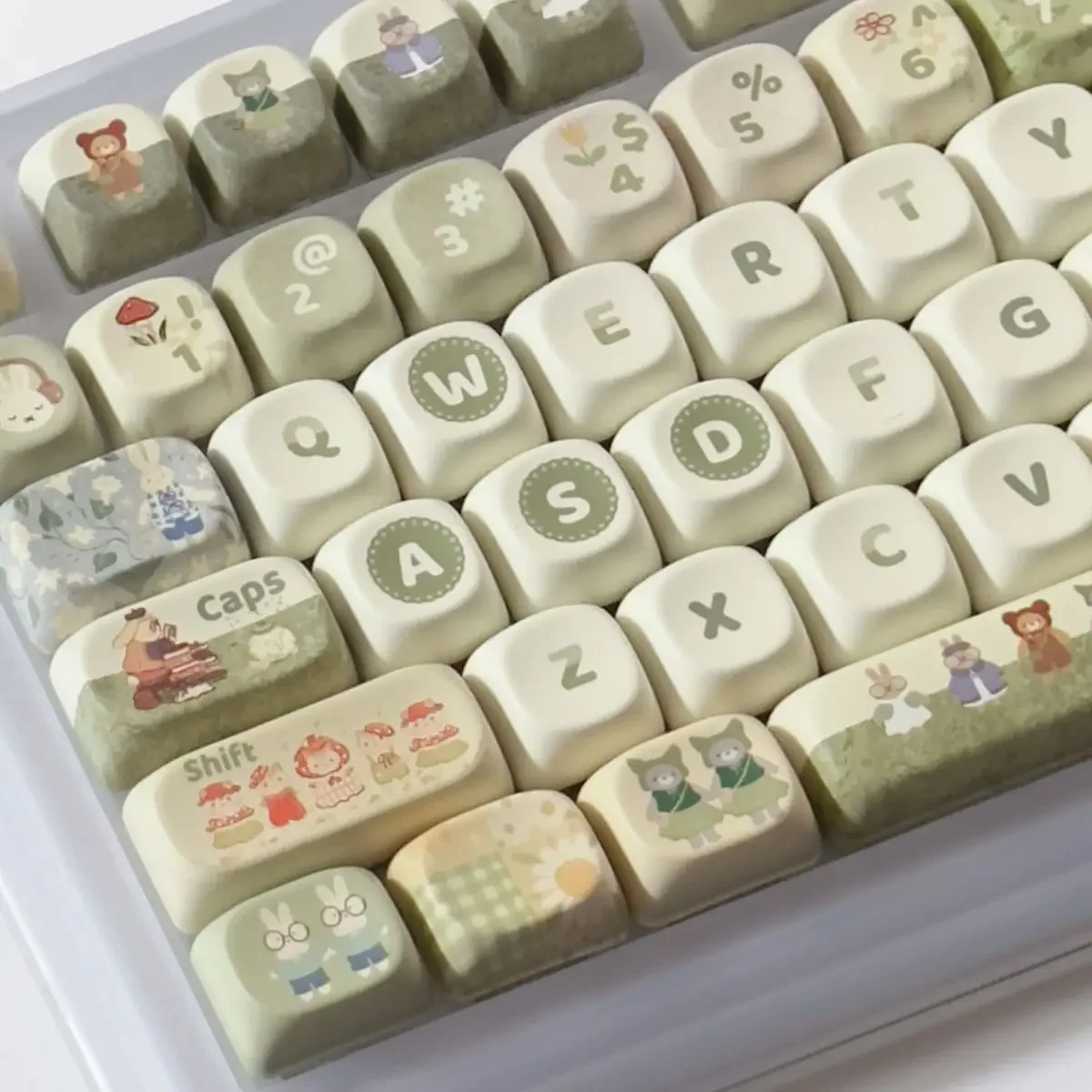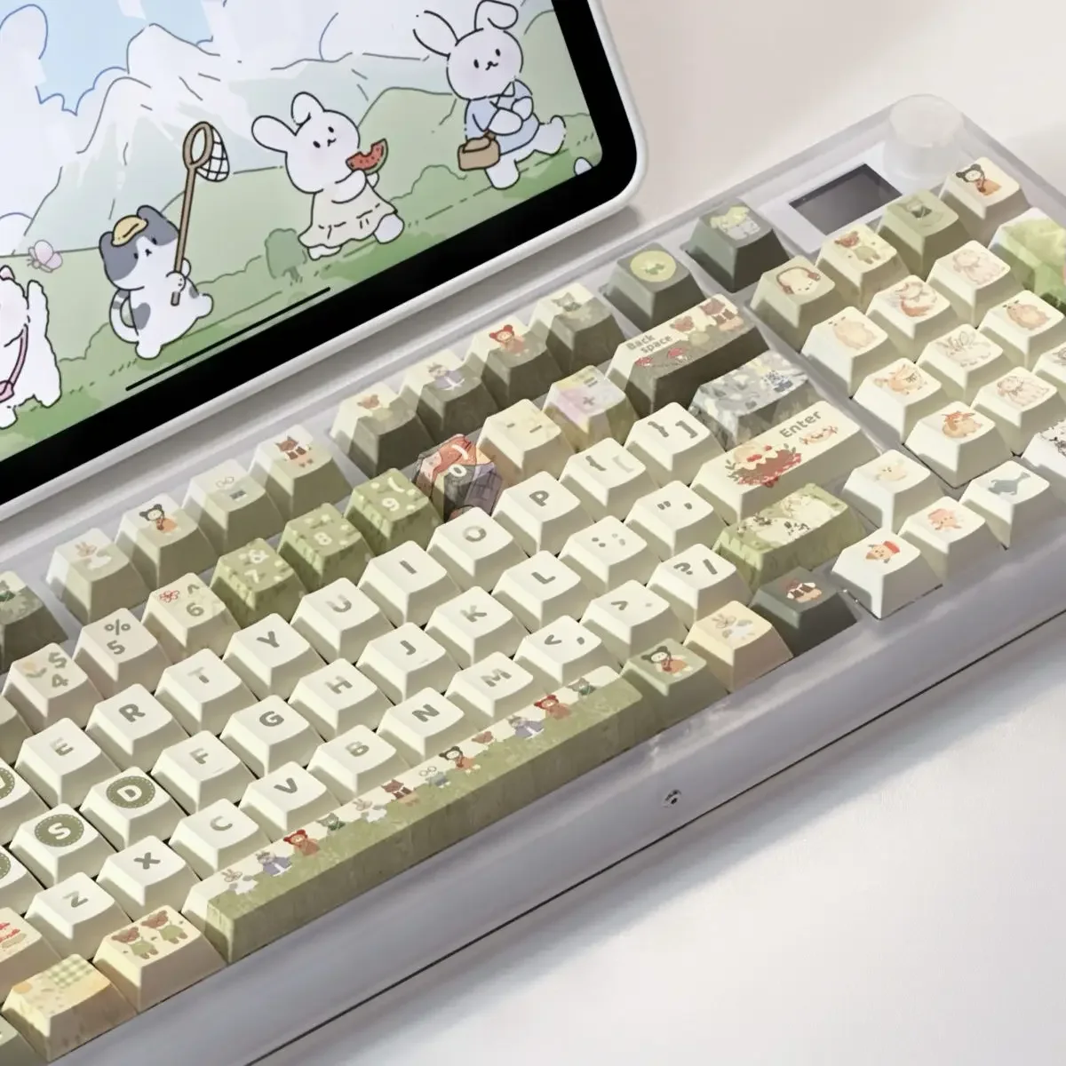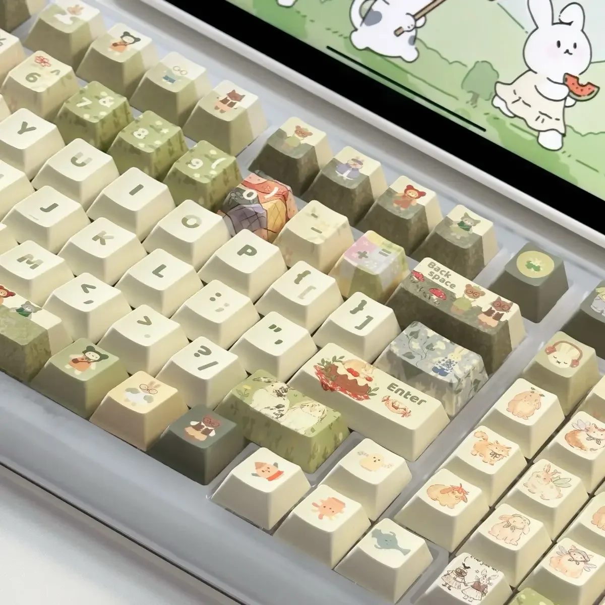 Comprar Juego completo de teclas de conejo de Animal pequeño verde, 140Key, Cherry Xoa Pbt, sublimación, llave mecánica, dibujos animados, lindo, leche verde